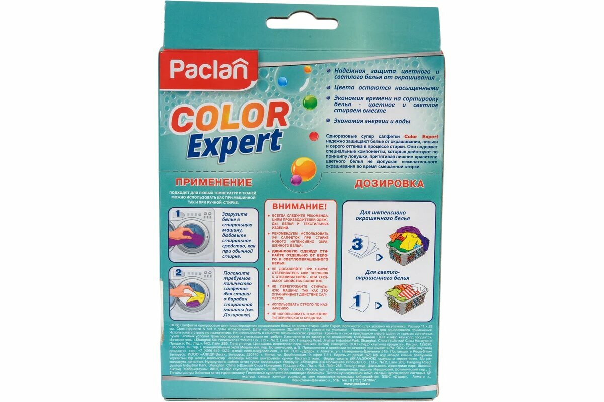 Салфетки от окрашивания во время стирки для защиты белья Paclan Color Expert салфетки для защиты белья от окрашивания во время стирки 20 шт.