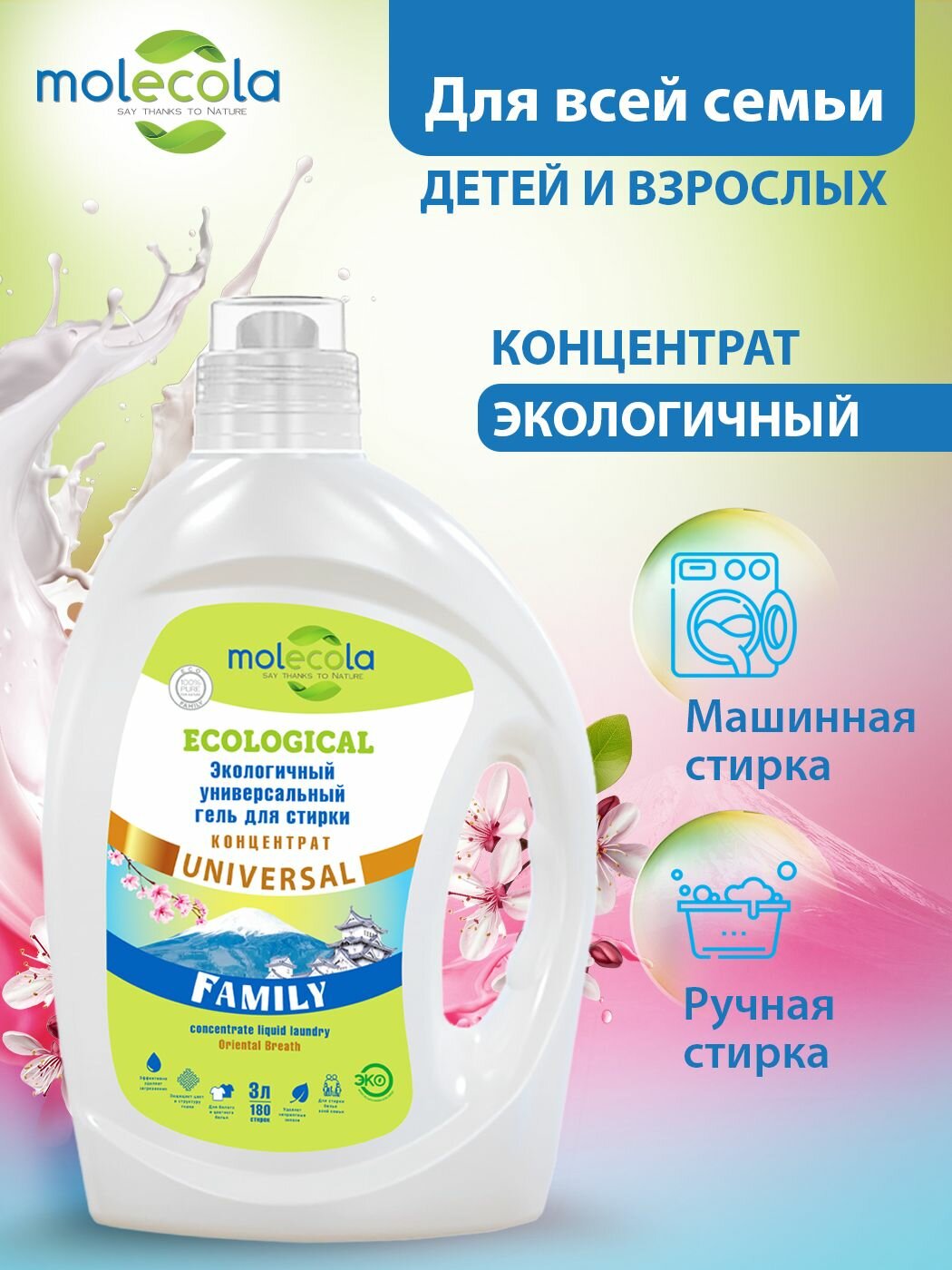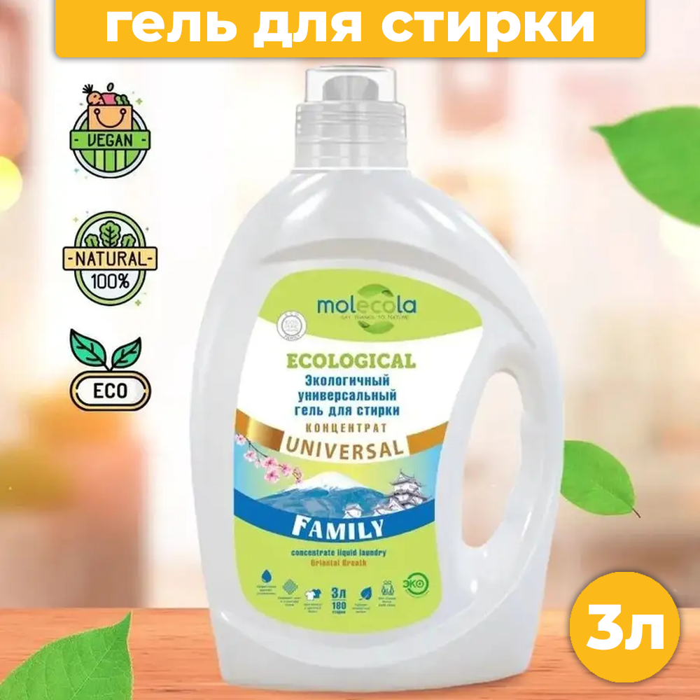 Гель для стирки Molecola Family универсальный экологичный 3 кг Гель для стирки Family универсальный 3 л
