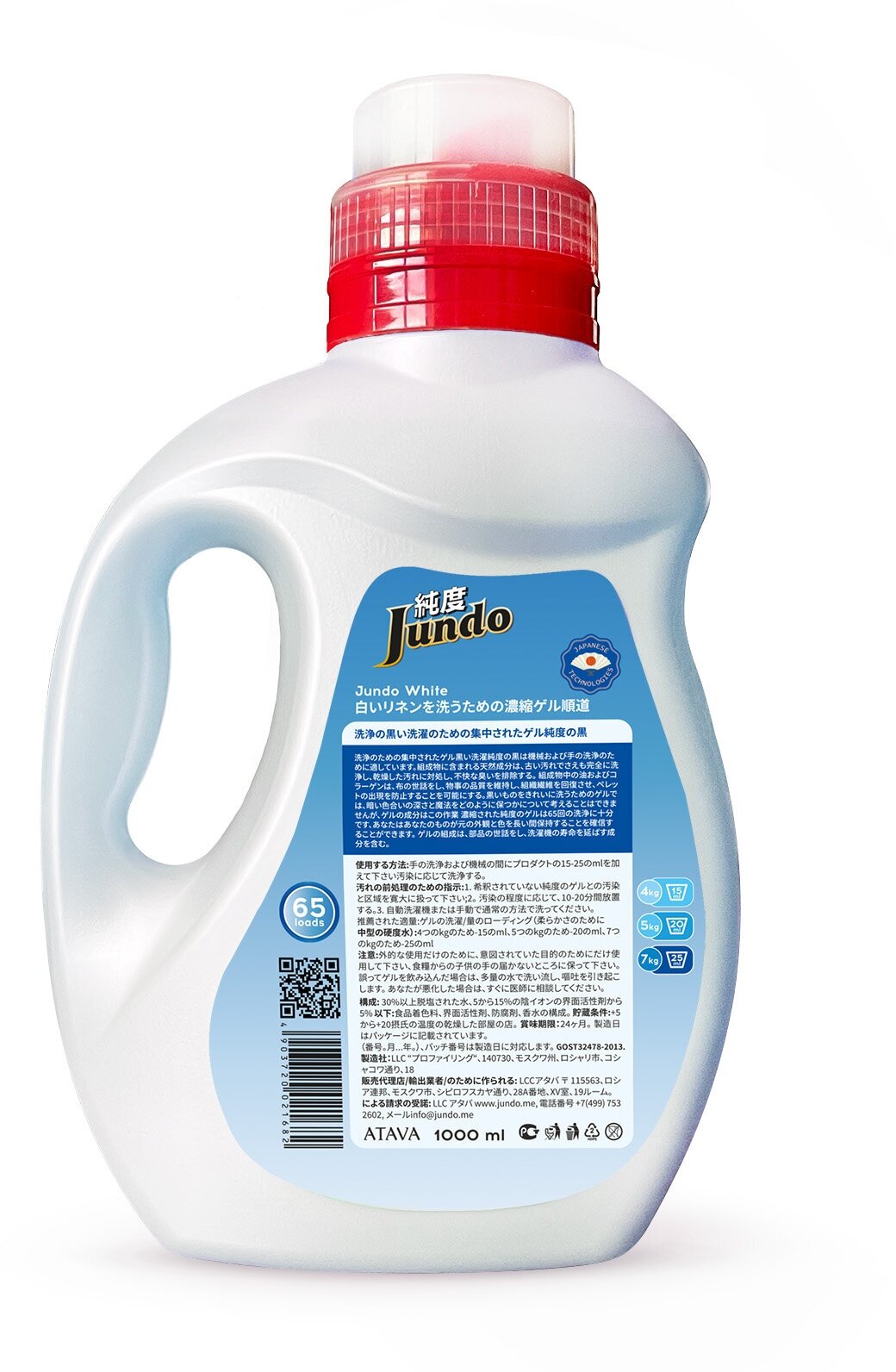 Оптический отбеливатель в составе геля Jundo придаст белью белизну и заставит вещи сверкать. Концентрированного геля Jundo Вам хватит на __ стирок, Вы можете быть уверены, что Ваши вещи надолго сохранят белизну и сияние. В состав геля входят компоненты, ухаживающие за деталями и продлевающие срок службы стиральной машины.