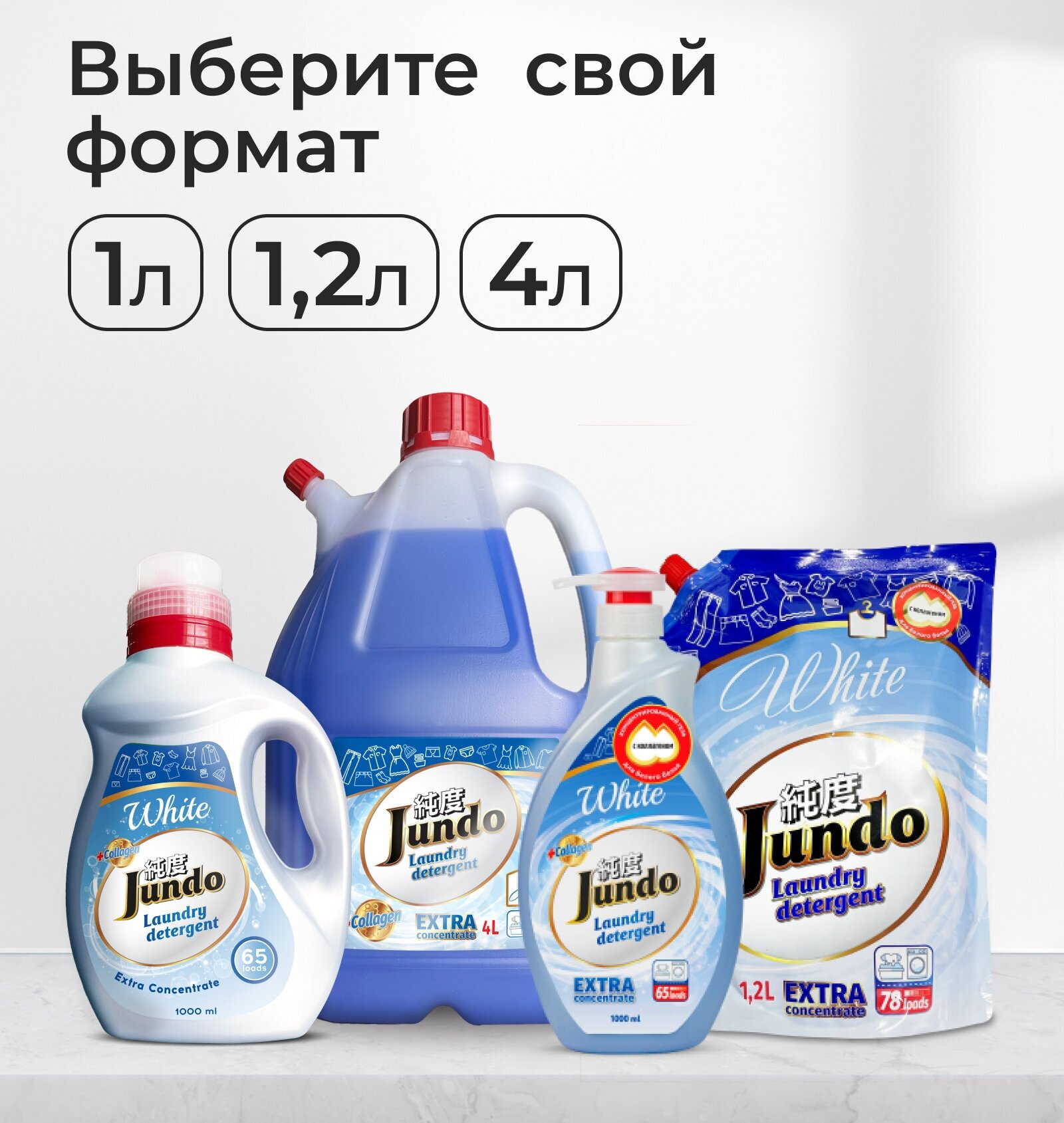Концентрированный универсальный гель для стирки белого белья Jundo White с коллагеном и маслами эффективно и бережно справляется с загрязнениями. Подходит для ручной и машинной стирки, замачивания и предварительной обработки пятен.