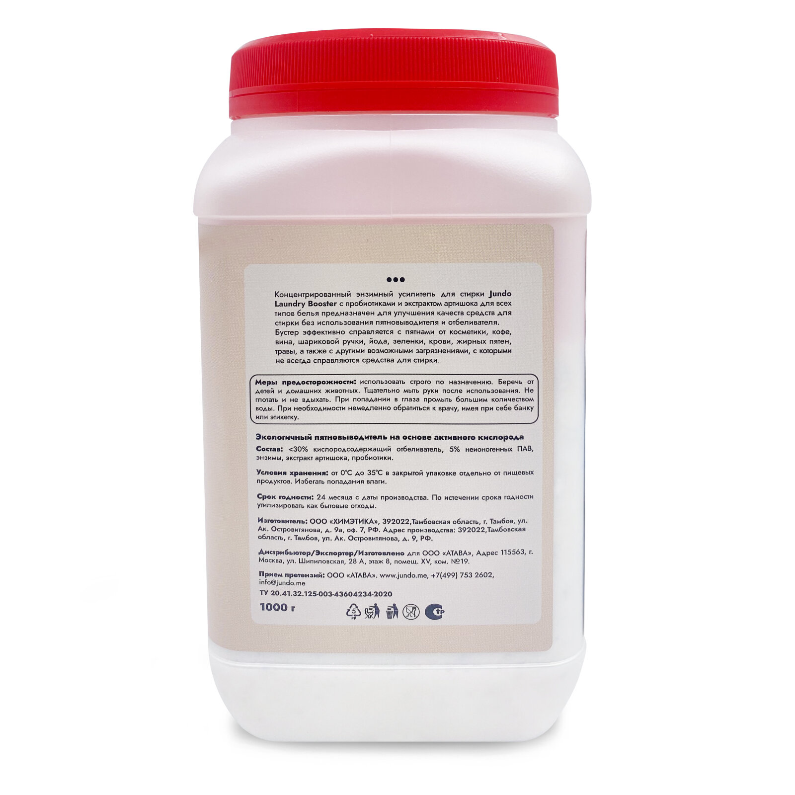 Концентрированный энзимный усилитель для стирки Jundo Laundry Booster с пробиотиками и экстрактом артишока для всех типов белья предназначен для улучшения качеств стиральных порошков, гелей, капсул и других средств для стирки без использования пятновыводителя и отбеливателя.
