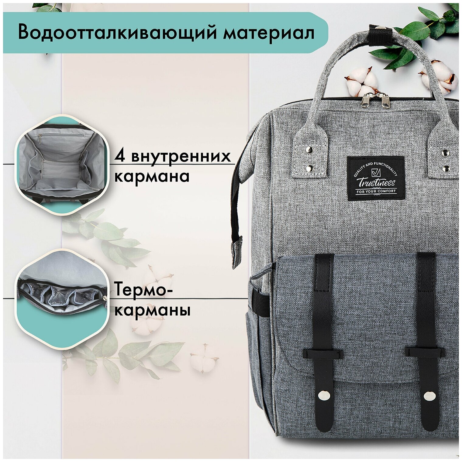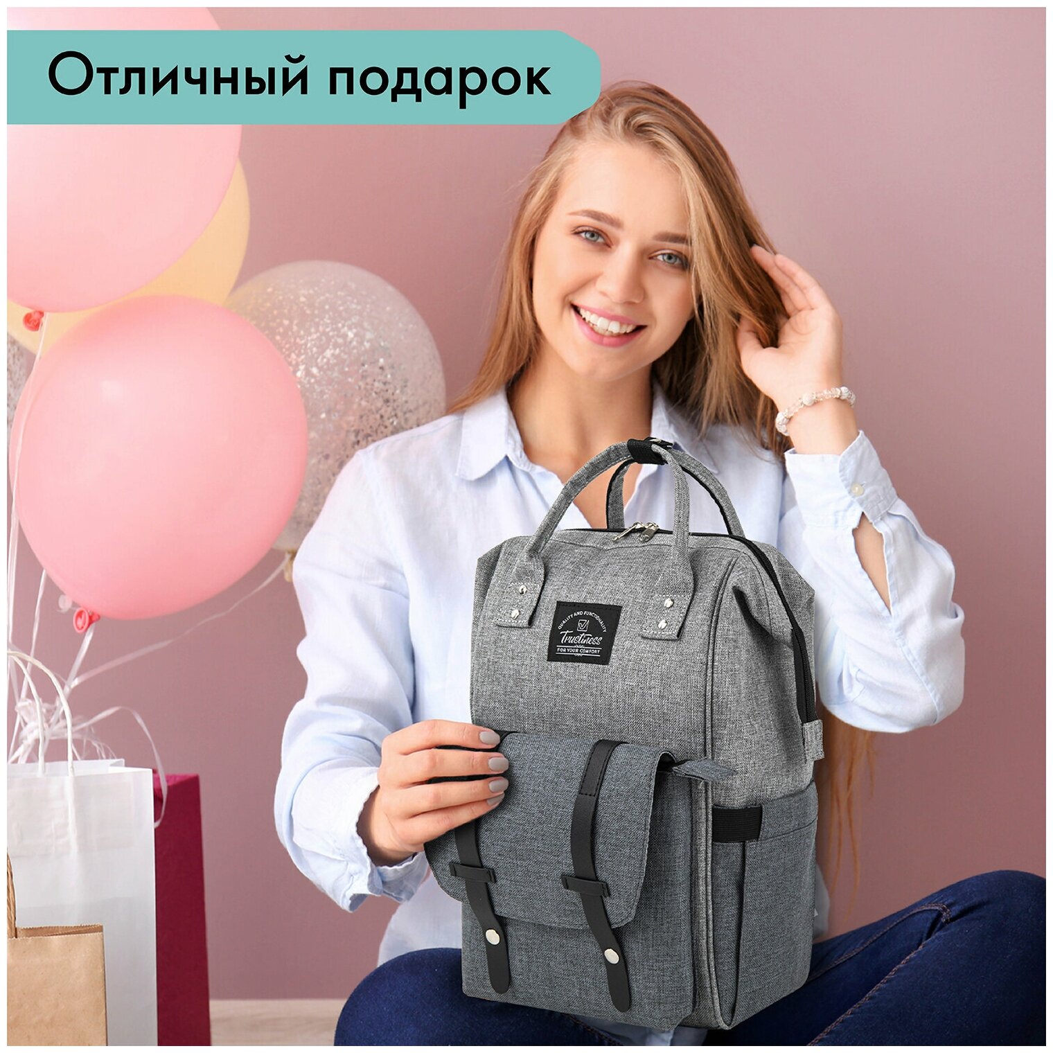 Многофункциональный и универсальный рюкзак создан для максимального удобства не только мам и пап, но и для всех кто ценит комфорт в поездках, путешествиях и просто прогулках. Модный и практичный аксессуар также подойдет для школьников и студентов.