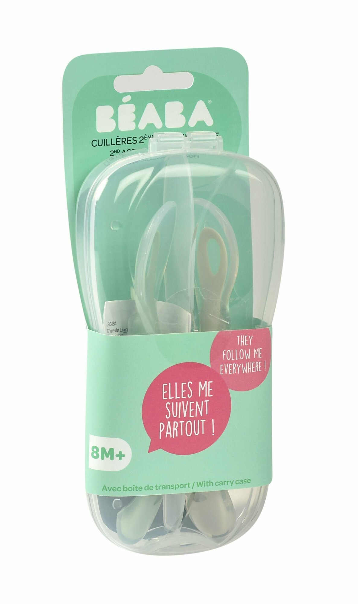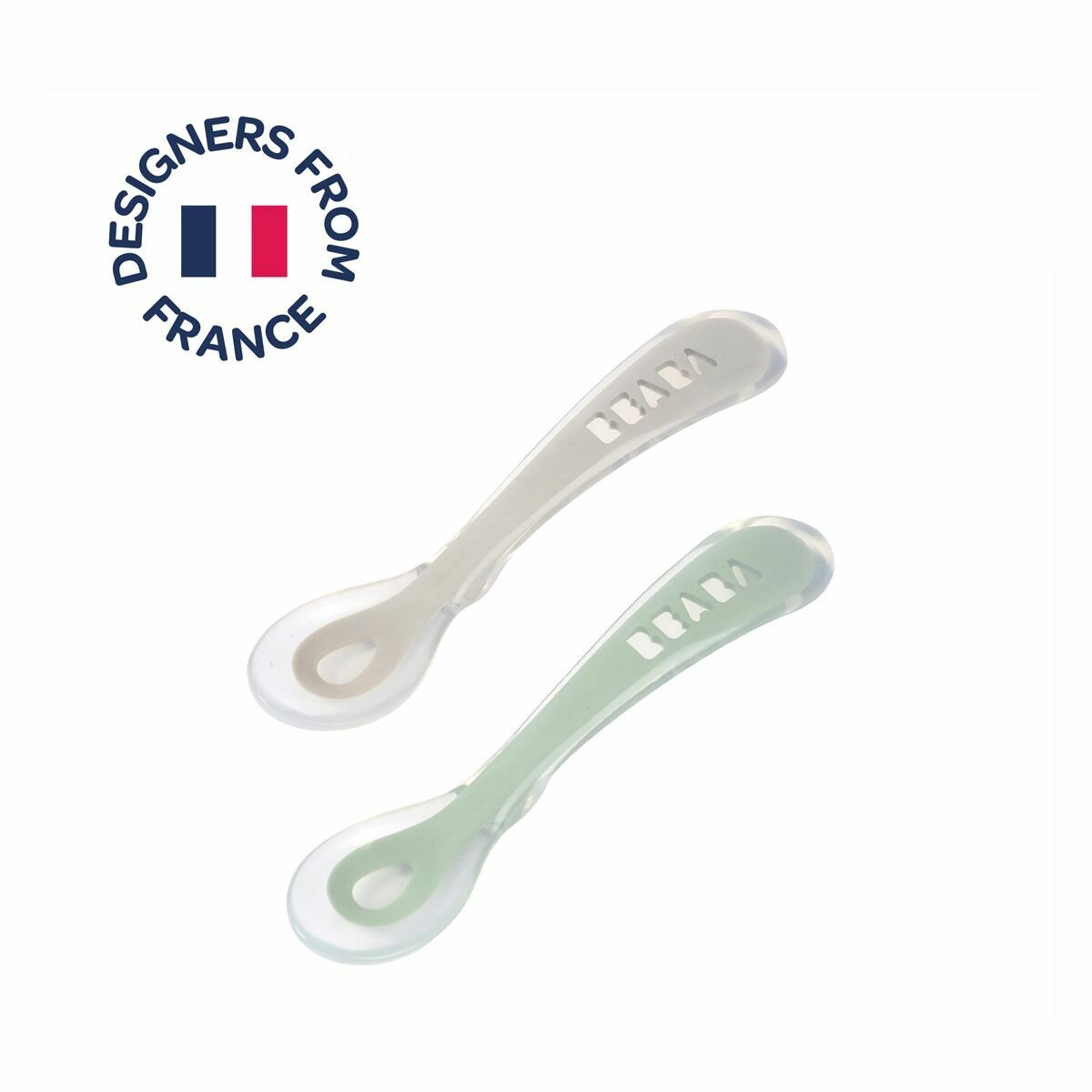 Ложка для кормления детская BEABA 2 шт ложечка для прикорма ложка силиконовая для ребенка BÉABA Набор из 2 силиконовых ложек в футляре Lot 2 Cuilleres Sil 2e age BT