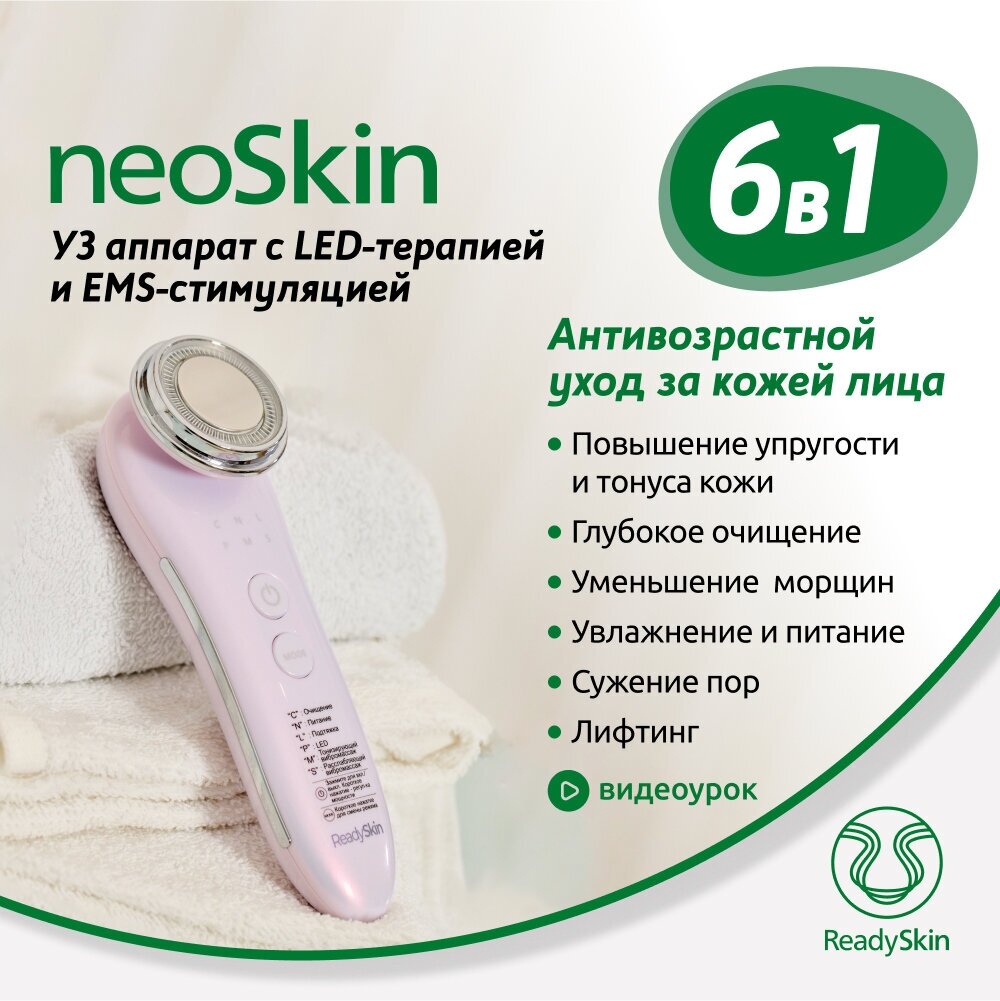 | Полное наименование | Косметологический аппарат ReadySkin neoSkin для ультразвуковой чистки лица и пор, увлажнения, лифтинга и массажа с функцией LED-терапии и EMS-стимуляции/ для ухода в домашних условиях |