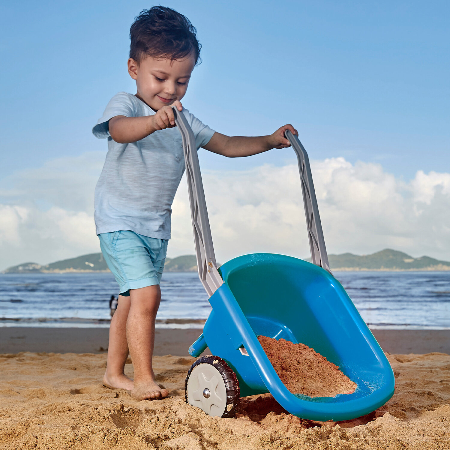 Используйте пляжную тележку, чтобы с легкостью перемещать песок и инструменты для копания, находясь на пляже или в песочнице!