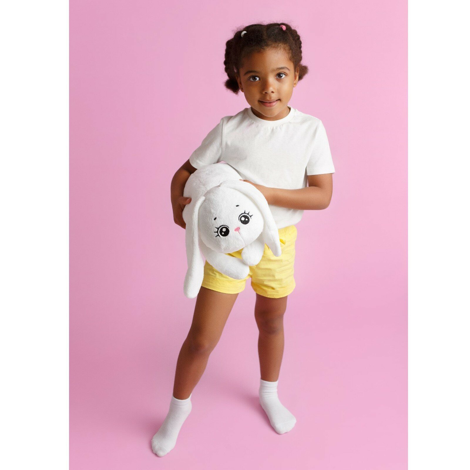 Милый зайчик станет лучшим другом ребенка, разделив с ним множество приятных моментов за игрой. Размер мягкой игрушки зайки позволит взять любимца с собой на прогулку, в гости или же отправиться с ним спать.