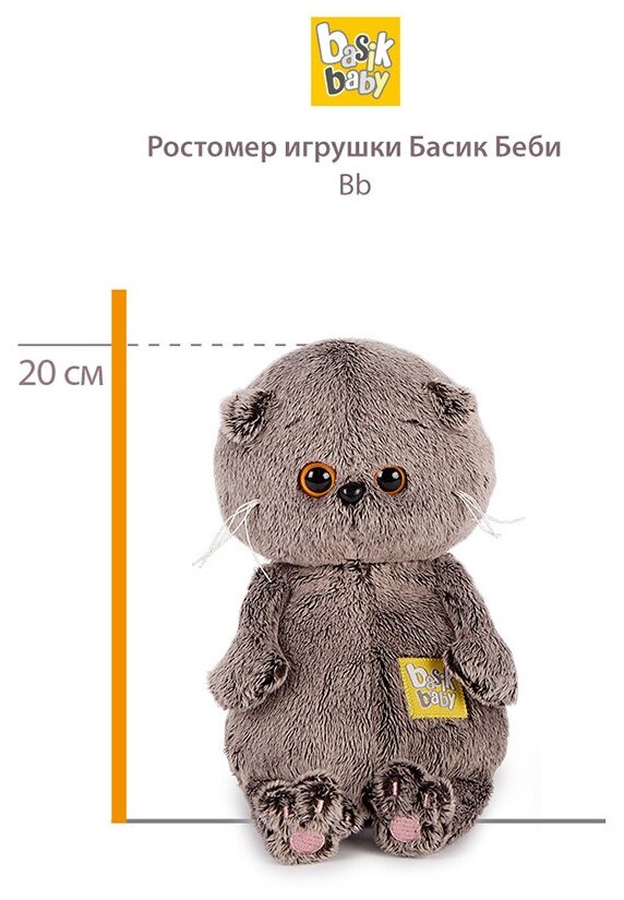 Мягкая игрушка Budi Basa Басик Baby с желтым бантиком и сердечком 20 см (размер: средние)