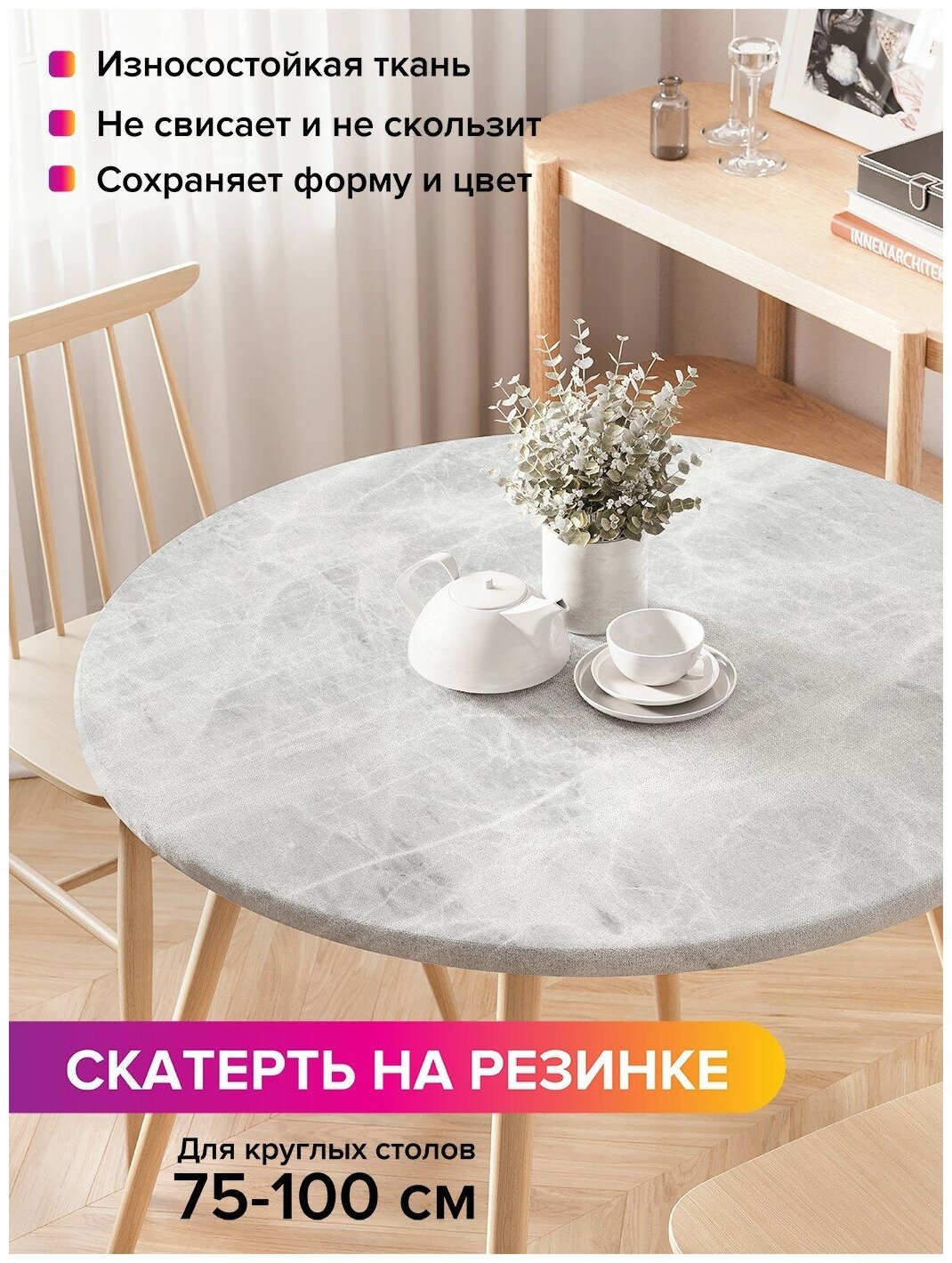 Круглая кухонная скатерть на резинке JoyArty на круглый стол диаметром 75-100 см. Скатерть на кухонный стол Серая мраморная поверхность круглая на резинке 75x100 см