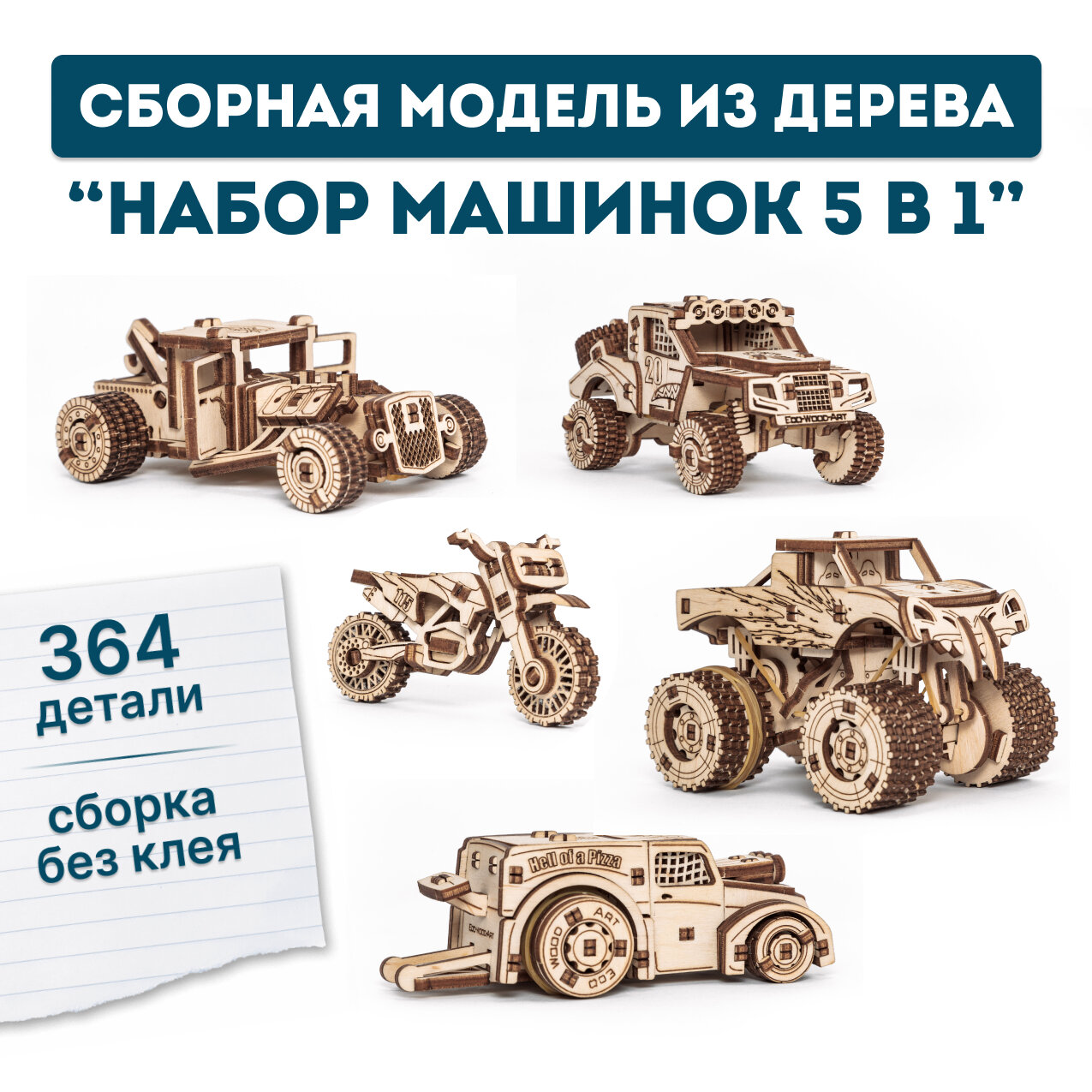 Сборная модели из дерева 3D EWA Набор машинок 5 в 1 Eco Wood Art Сборная модель 3D Ewa Набор машинок 5 в 1