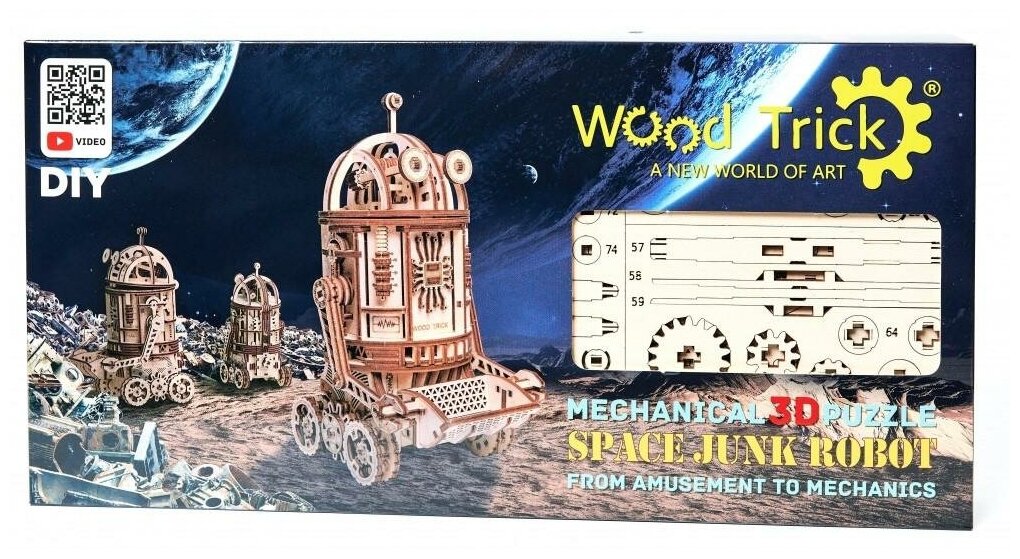 Модели для сборки Wood Trick Космический робот Уборщик 1234-88 Механическая деревянная сборная модель Космический робот Уборщик