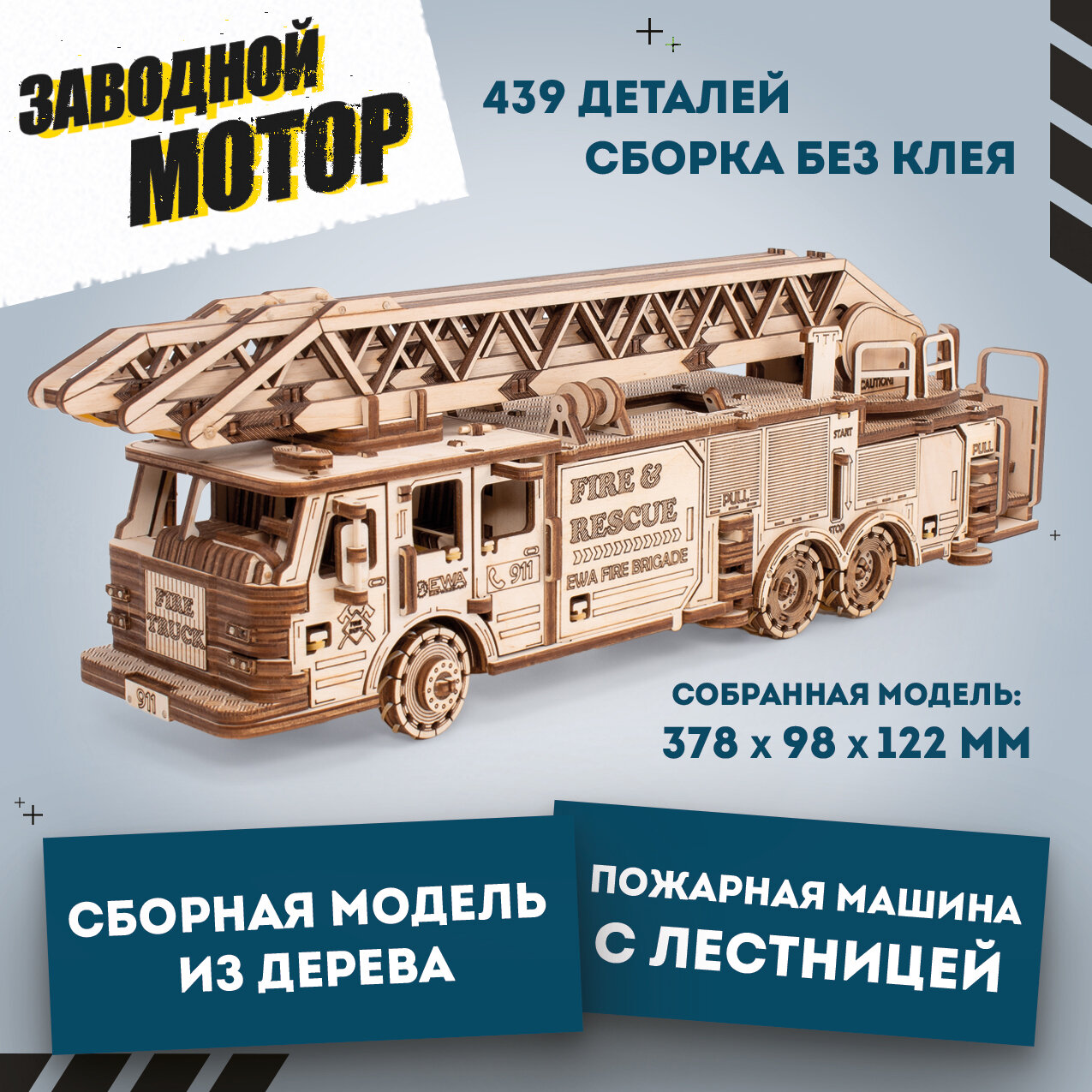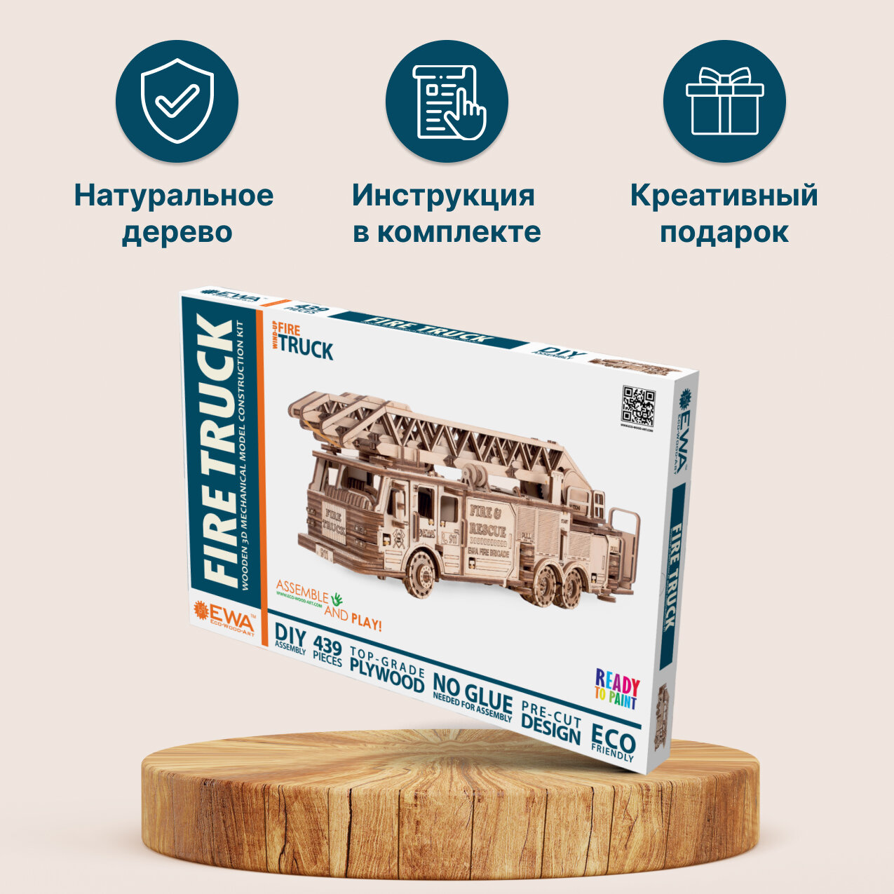 - Сборная модель деревянная 3D EWA «Пожарная машина с лестницей»