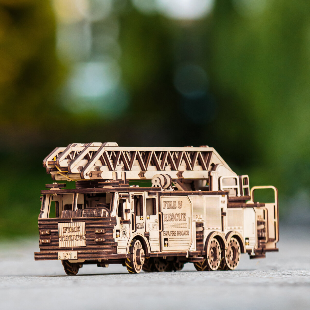 Пожарная машина с выдвижной и вращающейся лестницей от EWA (Eco-Wood-Art) - 3D пазл, сборная модель.