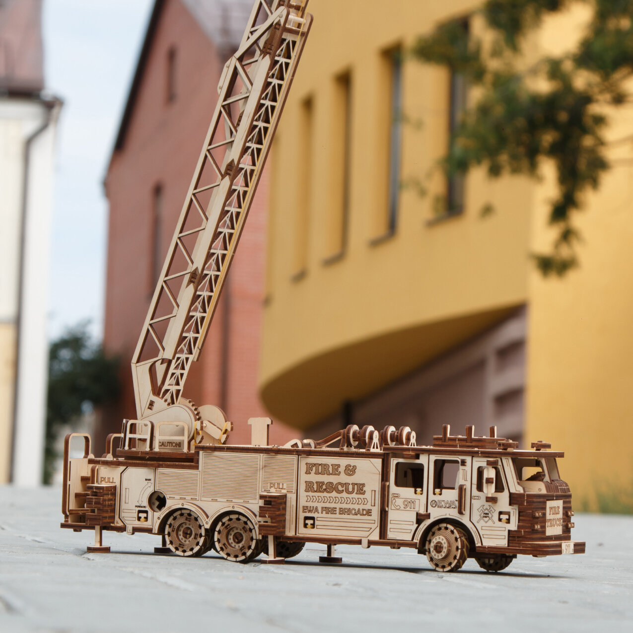 - Пожарная машина с выдвижной и вращающейся лестницей от EWA (Eco-Wood-Art) - 3D пазл, сборная модель.