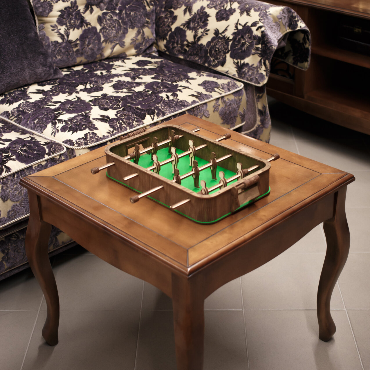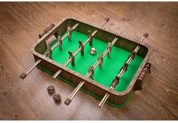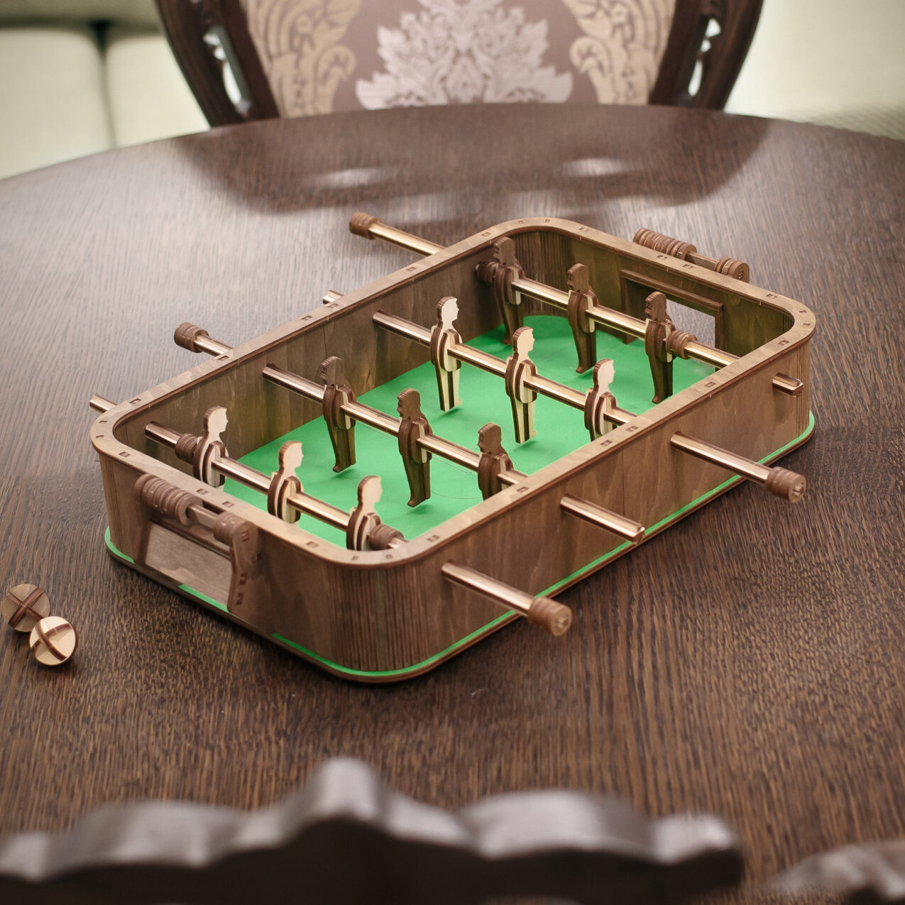 Деревянный конструктор Eco Wood Art (EWA) Настольный футбол. Первый в своем роде, уникальная модель. Настольная игра Футбол — это отличный тренажёр для оттачивания спортивных навыков. Потренируйтесь на игровом модуле, а затем отправляйтесь на улицу демонстрировать своё мастерство. В футбол играют 2 человека, у каждого из них своя команда. Задача игрока — одновременно управлять вратарём, защитниками и нападающими, стараясь забить мяч в ворота соперника. Ребёнку понравится настольный футбол.