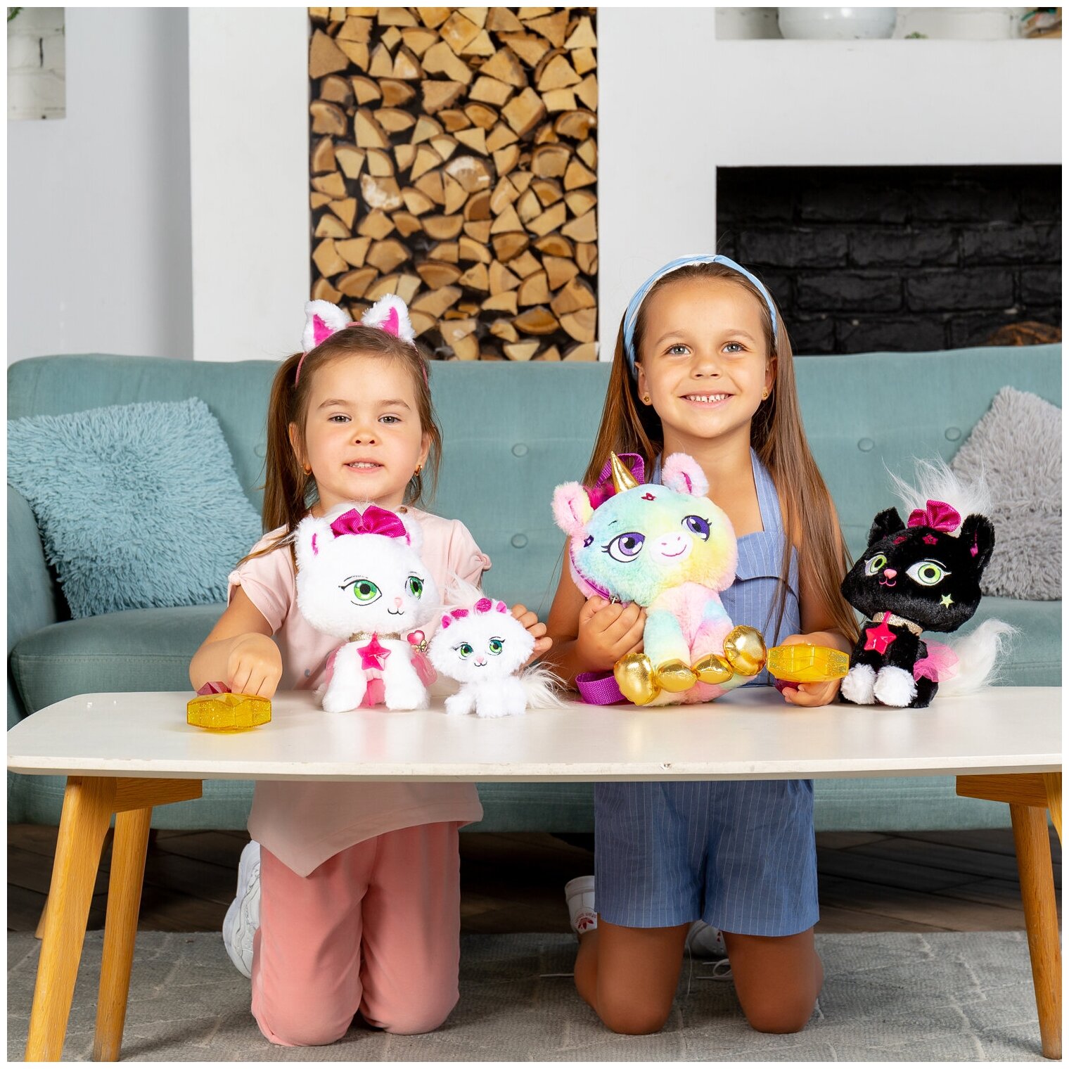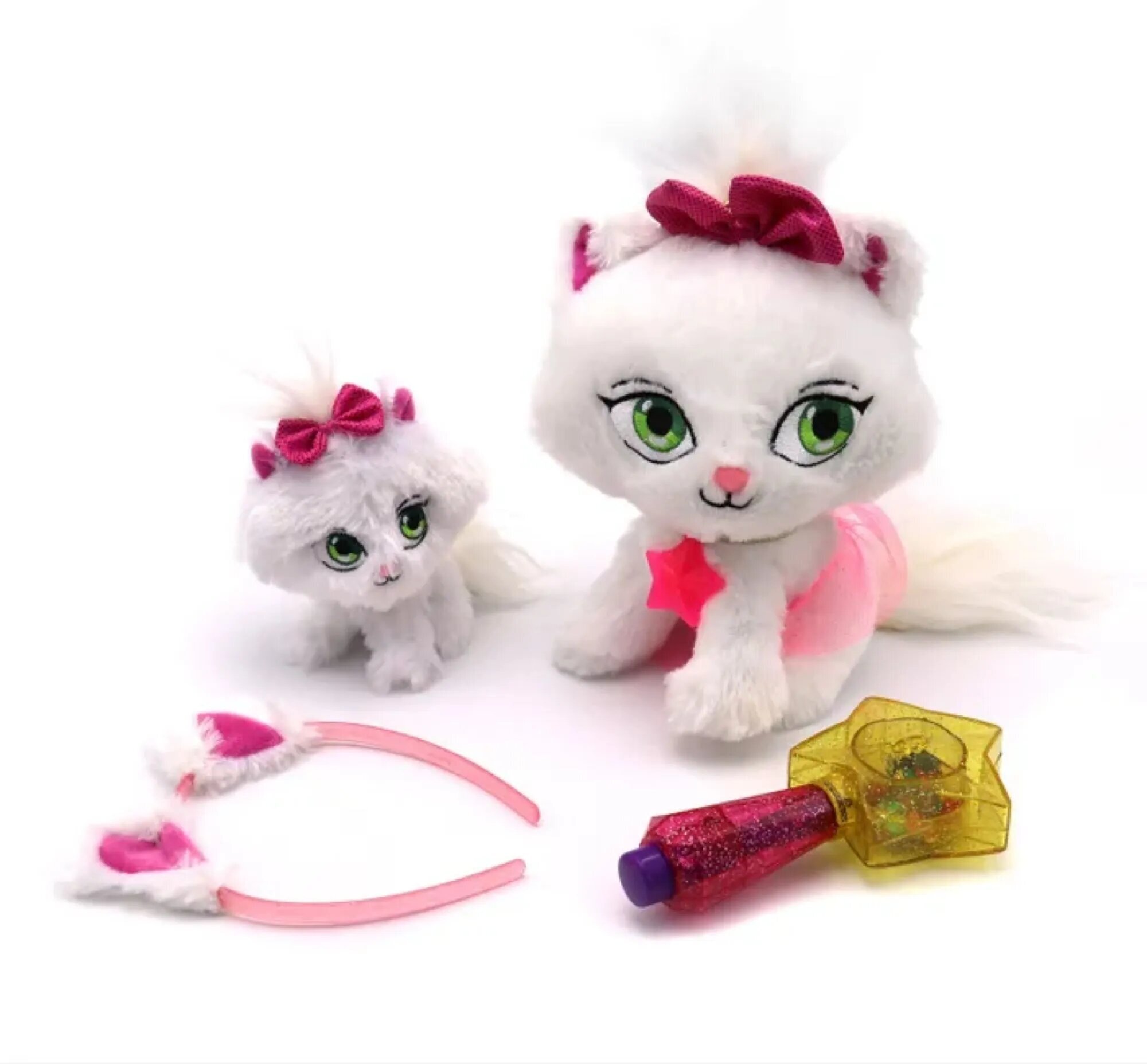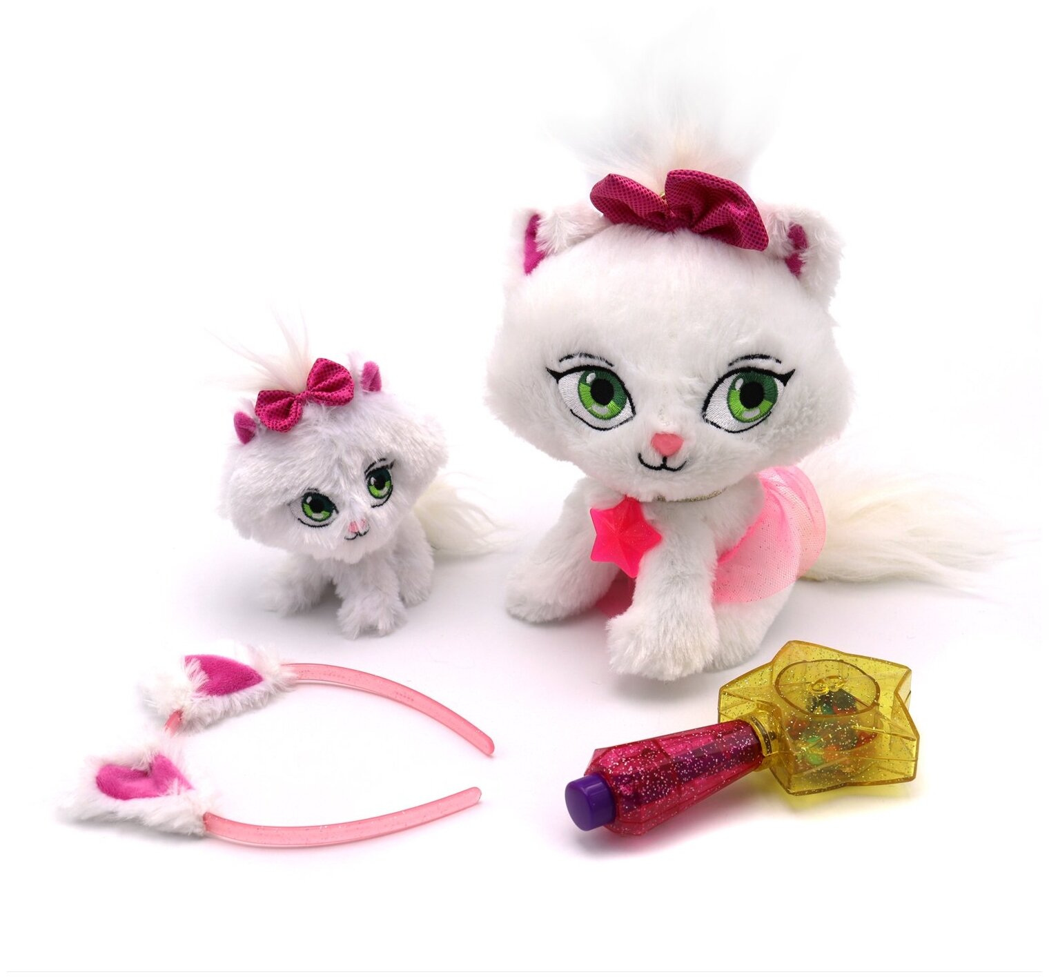 Комплект: плюшевые кошка и котенок, шиммерайзер (аксессуар для хранения и нанесения блесток), 200+, расческа