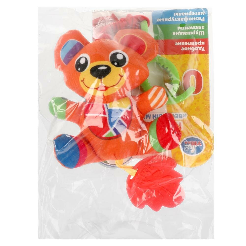 Эта игрушка в виде милого медвежонка непременно приведёт ребёнка в восторг. Подвеска выполнена в ярких цветах из очень мягкого и гипоаллергенного материала. Благодаря креплению-клипсе игрушку удобно присоединять к кроватке, коляске или дуге. Прорезыватель интересной формы из качественного безопасного материала пригодится малышу, когда у него будут резаться зубки.