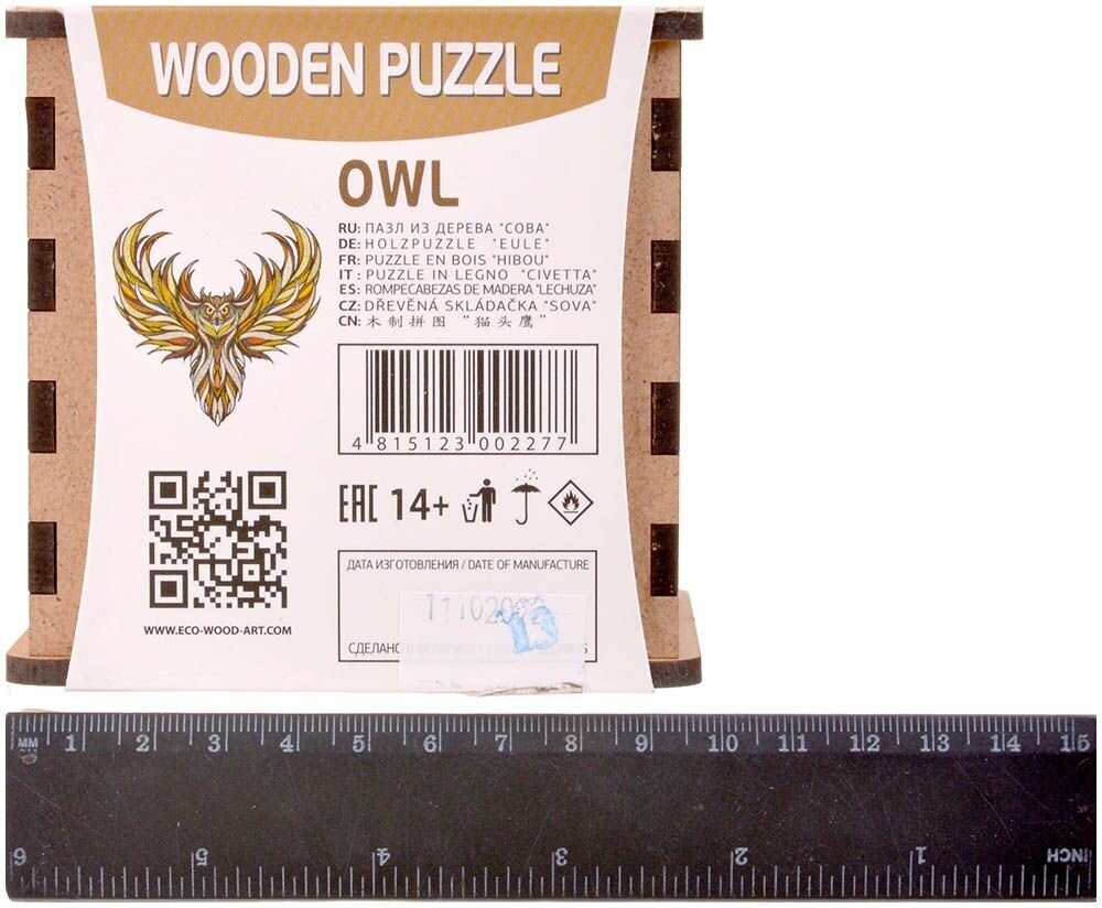 Деревянная игрушка Eco Wood Art Пазл головоломка Мудрая Сова S 21x22 см