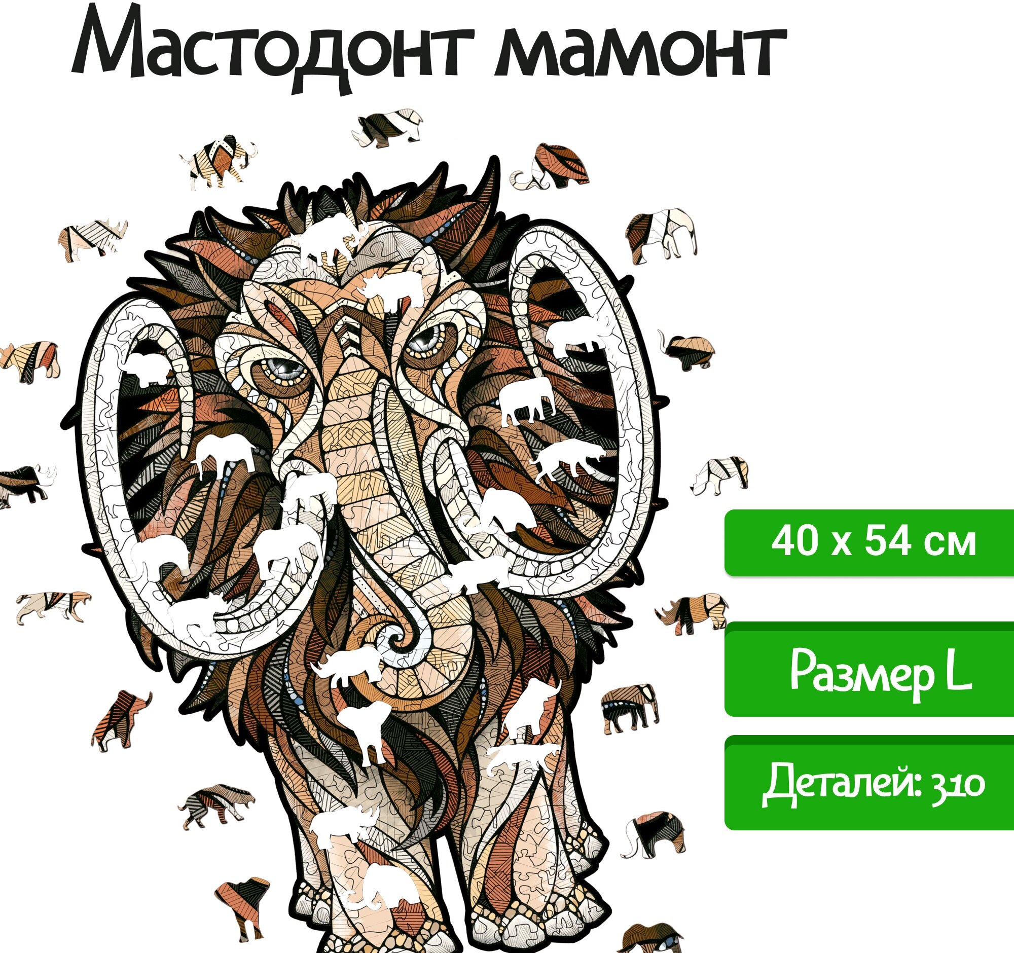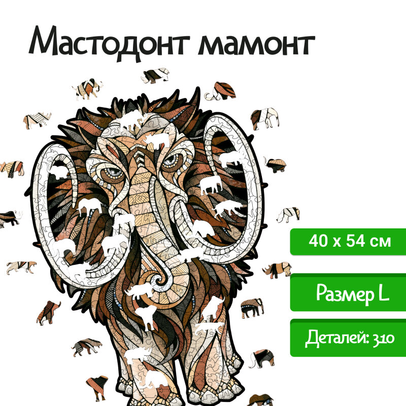 Модель: Фигурный пазл Мастодон Мамонт L 40x54 см