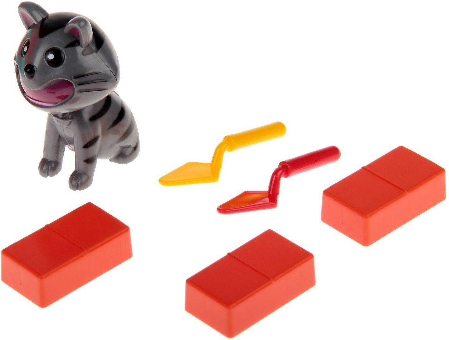 | Комплектация | подставка, кирпичи 44 шт., мастерки 2 шт., фигурка кошки |