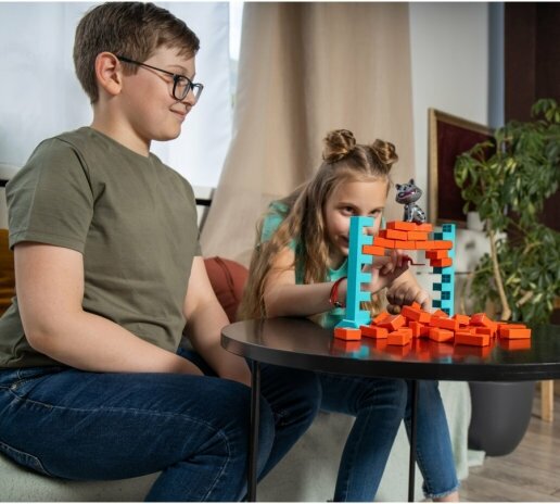 Кошка забралась на стену и ни в какую не хочет оттуда слазить. Задача игроков - разобрать стенку при помощи мастерков так, чтобы кошка при этом не упала. Игра развивает ловкость и координацию.