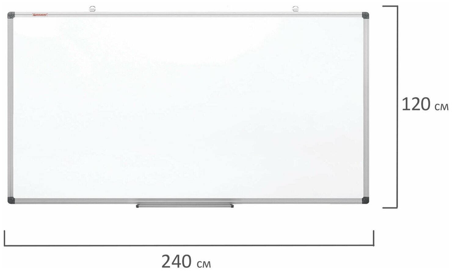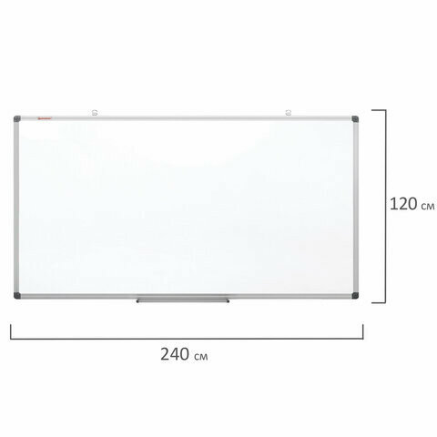 Лаковое покрытие предназначено для письма специальными маркерами для белой доски, а металлическая поверхность позволяет размещать информацию при помощи магнитов. Доска размером 120х240 см имеет укрепленные пластиковые уголки, которые позволяют скрыть места крепления к стене. Профиль придает изделию дополнительную прочность и современный стильный внешний вид.
