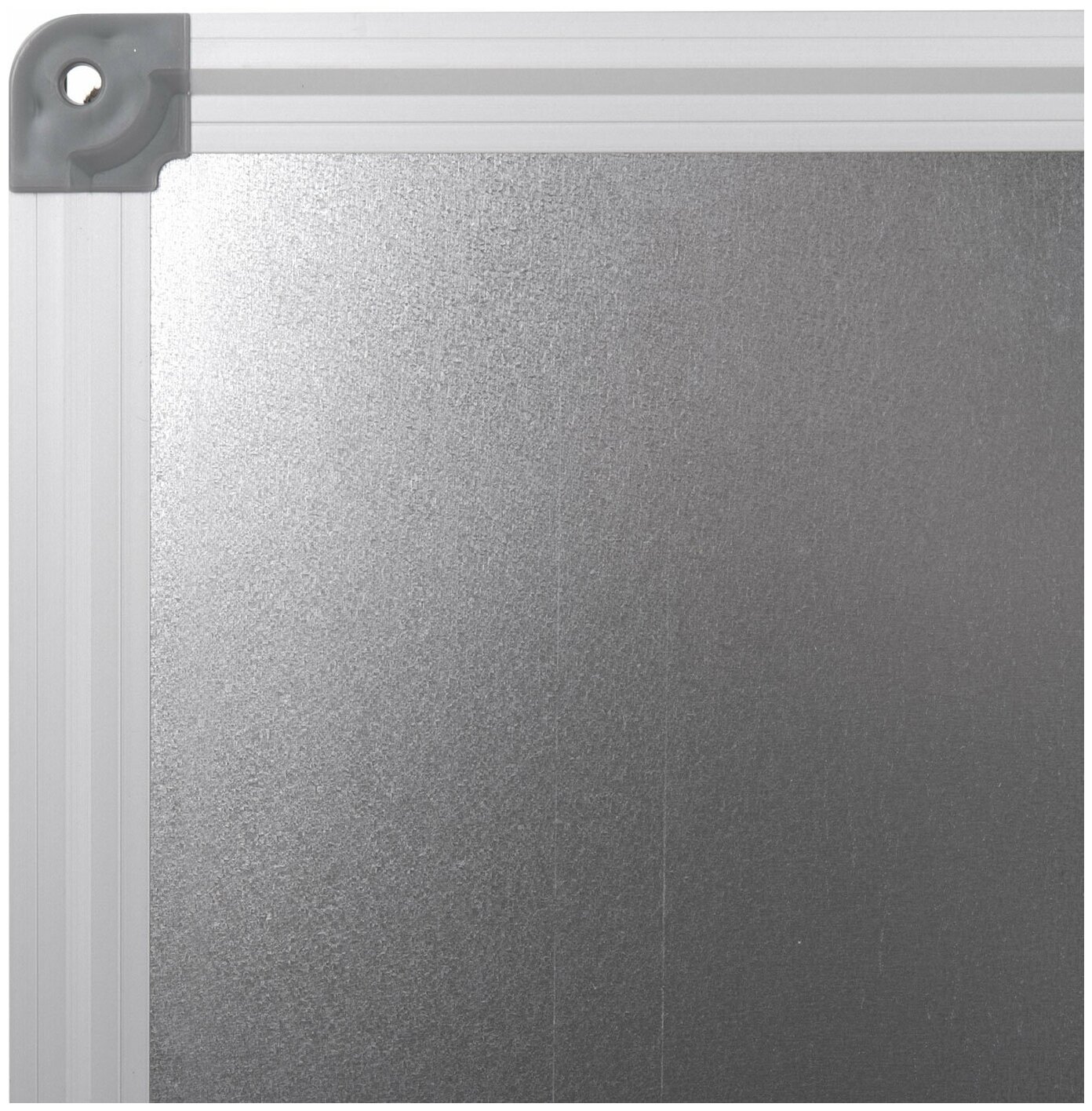 Лаковое покрытие предназначено для письма специальными маркерами для белой доски, а металлическая поверхность позволяет размещать информацию при помощи магнитов. Доска размером 120х180 см имеет укрепленные пластиковые уголки, которые позволяют скрыть места крепления к стене. Профиль придает изделию дополнительную прочность и современный стильный внешний вид.