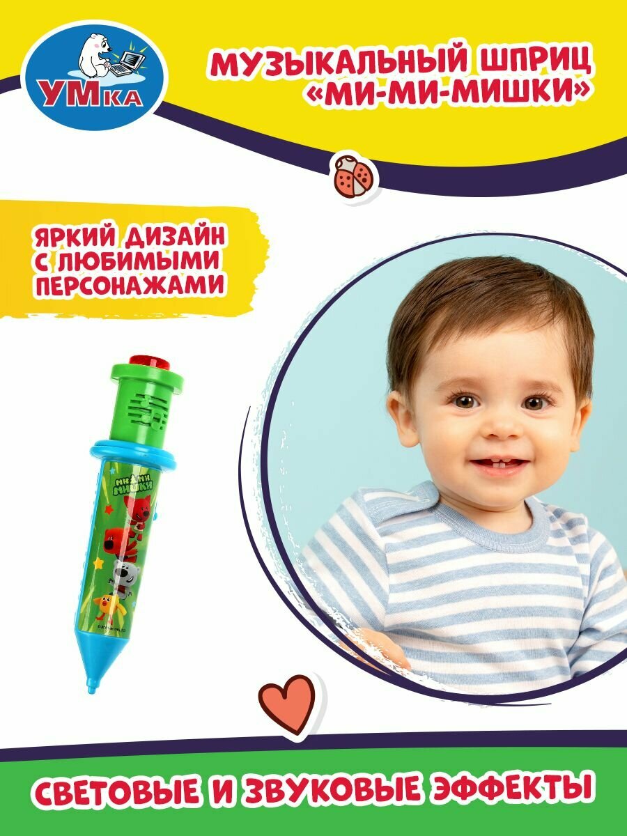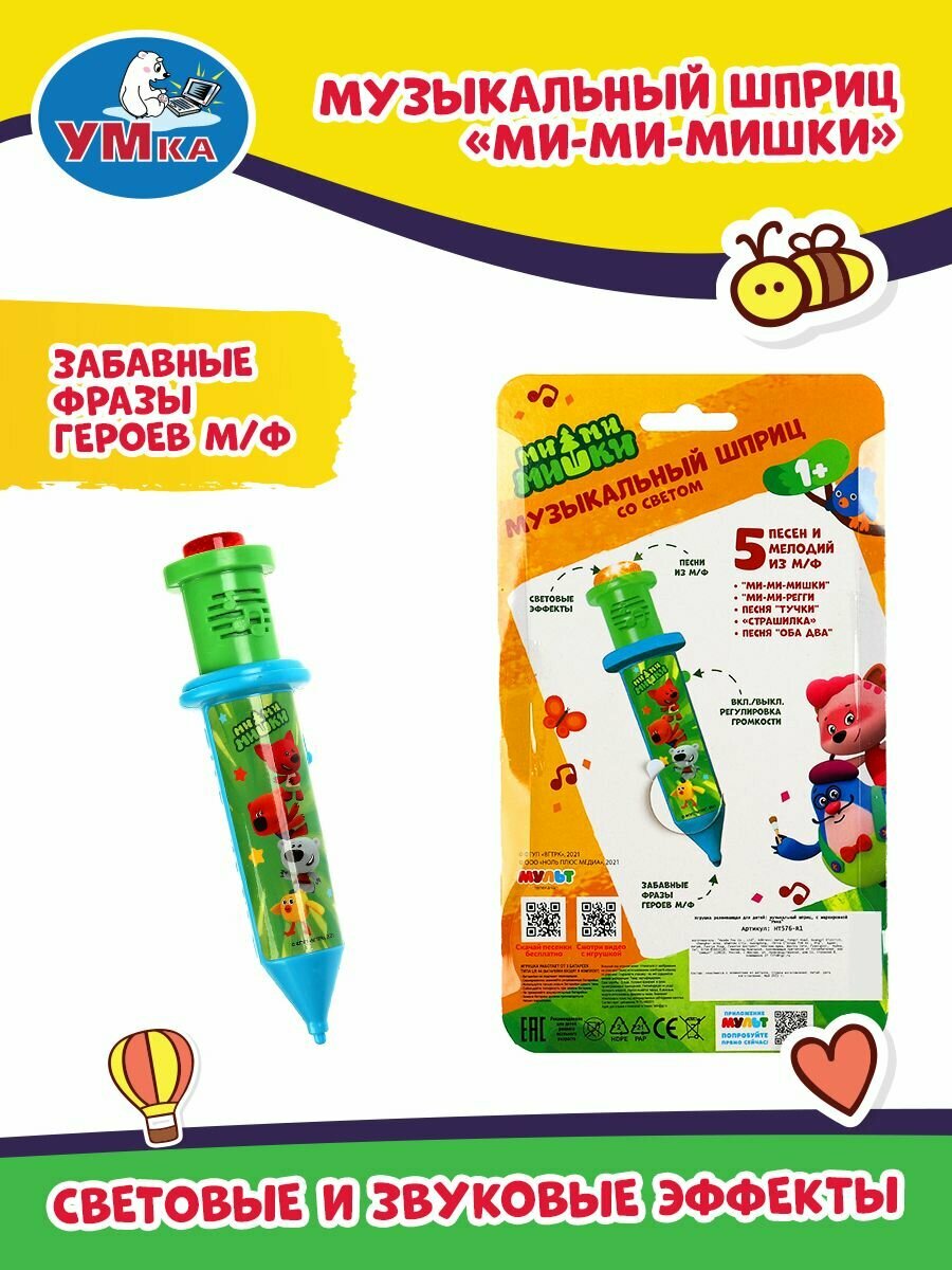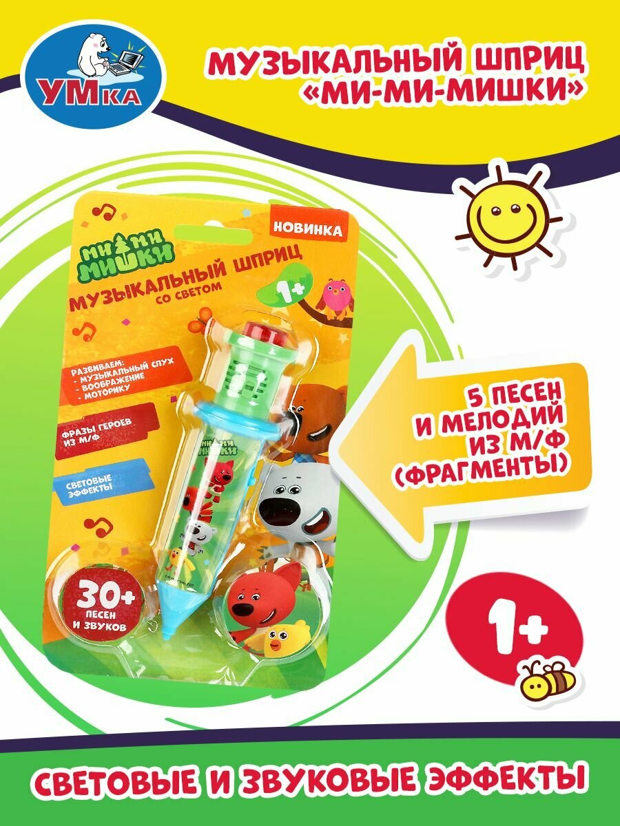 Развивающая игрушка «Ми-ми-мишки. Музыкальный шприц» ТМ «УМка» станет прекрасным подарком для маленьких поклонников мультсериала про весёлых медвежат и их друзей: