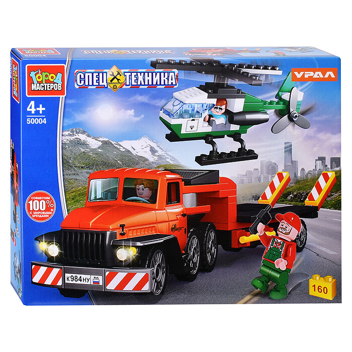 Конструктор Город мастеров Урал-перевозчик с вертолётом 160 деталей