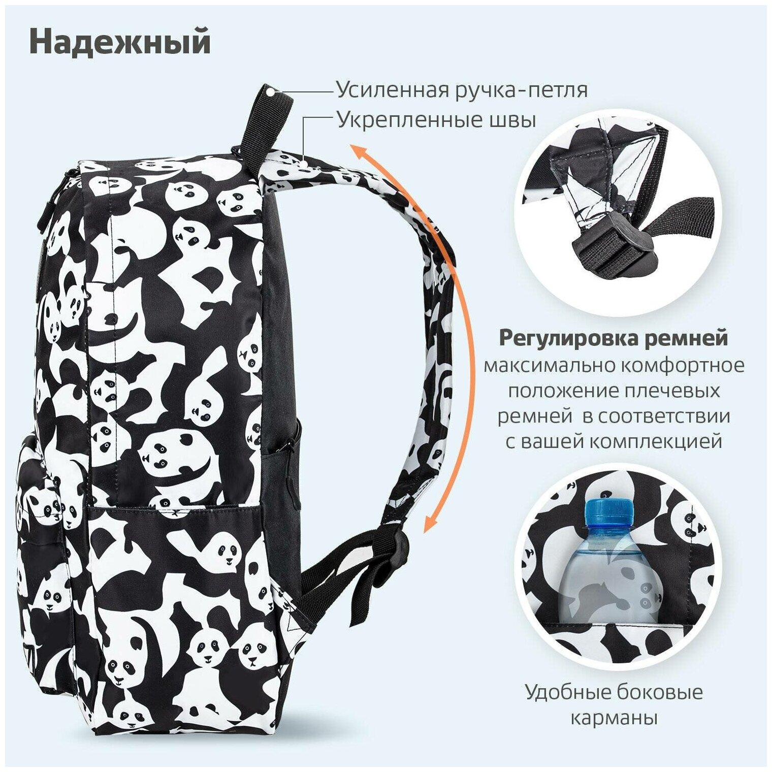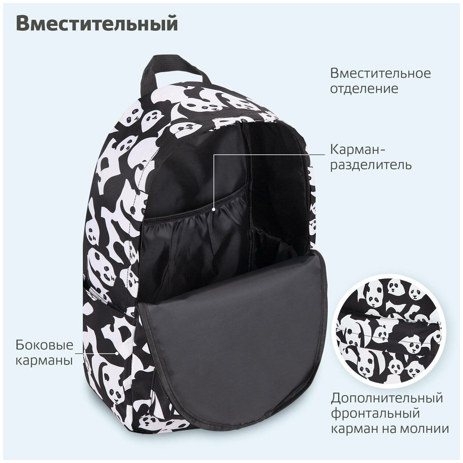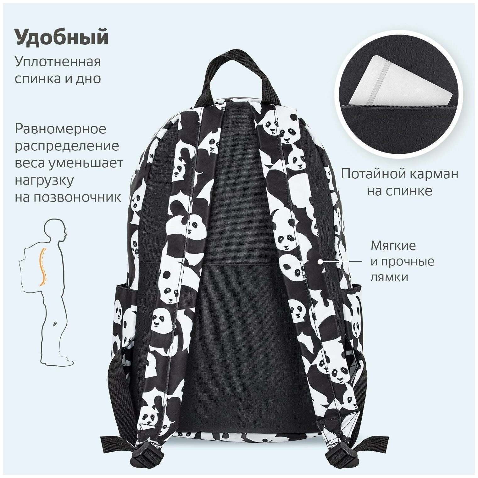 Модель: Рюкзак Positive универсальный c потайным карманом Pandas 42х28х14 см