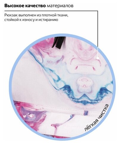 Рюкзак изготовлен из прочного качественного полиэстера, который легко чистится. Имеет уплотненную спинку и дно. Внутренние отделения имеют подкладку из прочного полиэстера. Высокотехнологичная цифровая печать по ткани позволила получить яркие и насыщенные краски. Дизайн соответствует последним модным трендам!