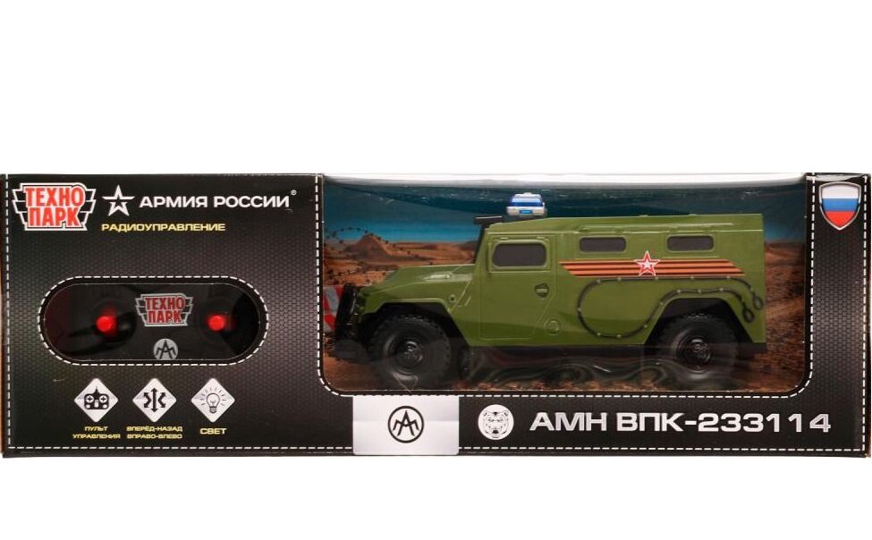 Быстрая и манёвренная модель машины, выполненная с учётом всех особенностей прототипа, обязательно понравится вашему ребёнку. Каждая деталь отлично проработана. Реалистичный дизайн данной модели плюс световые эффекты и радиоуправление позволят с головой погрузиться в игру, придумывая новые интересные сюжеты. Кроме того, эта игрушка познакомит малыша с марками автомобилей и видами военной техники.