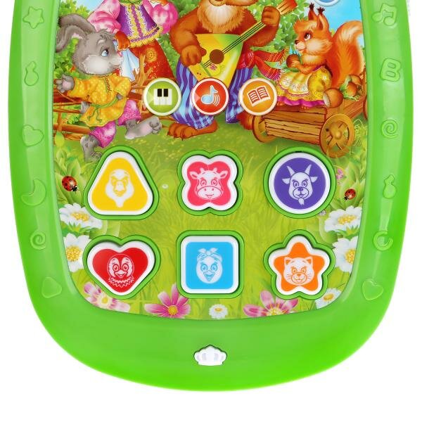 Нажимая на кнопочки разной формы и цвета малыш услышит 50 потешек, сказок и звуков. Благодаря компактному размеру игрушку можно брать с собой на прогулку, в гости к друзьям или в путешествие. Растите и развивайте малыша вместе с музыкальными игрушками «УМка».