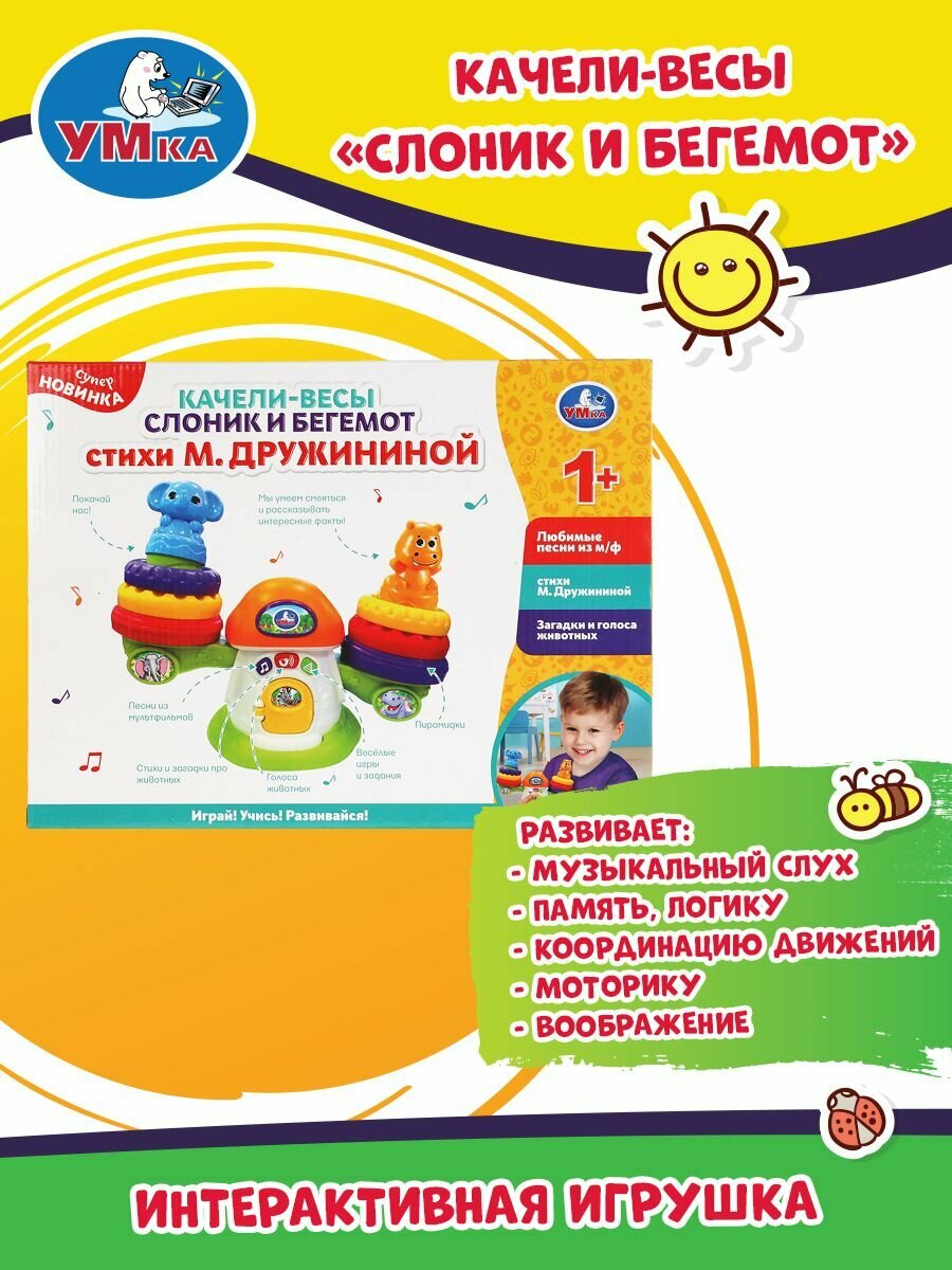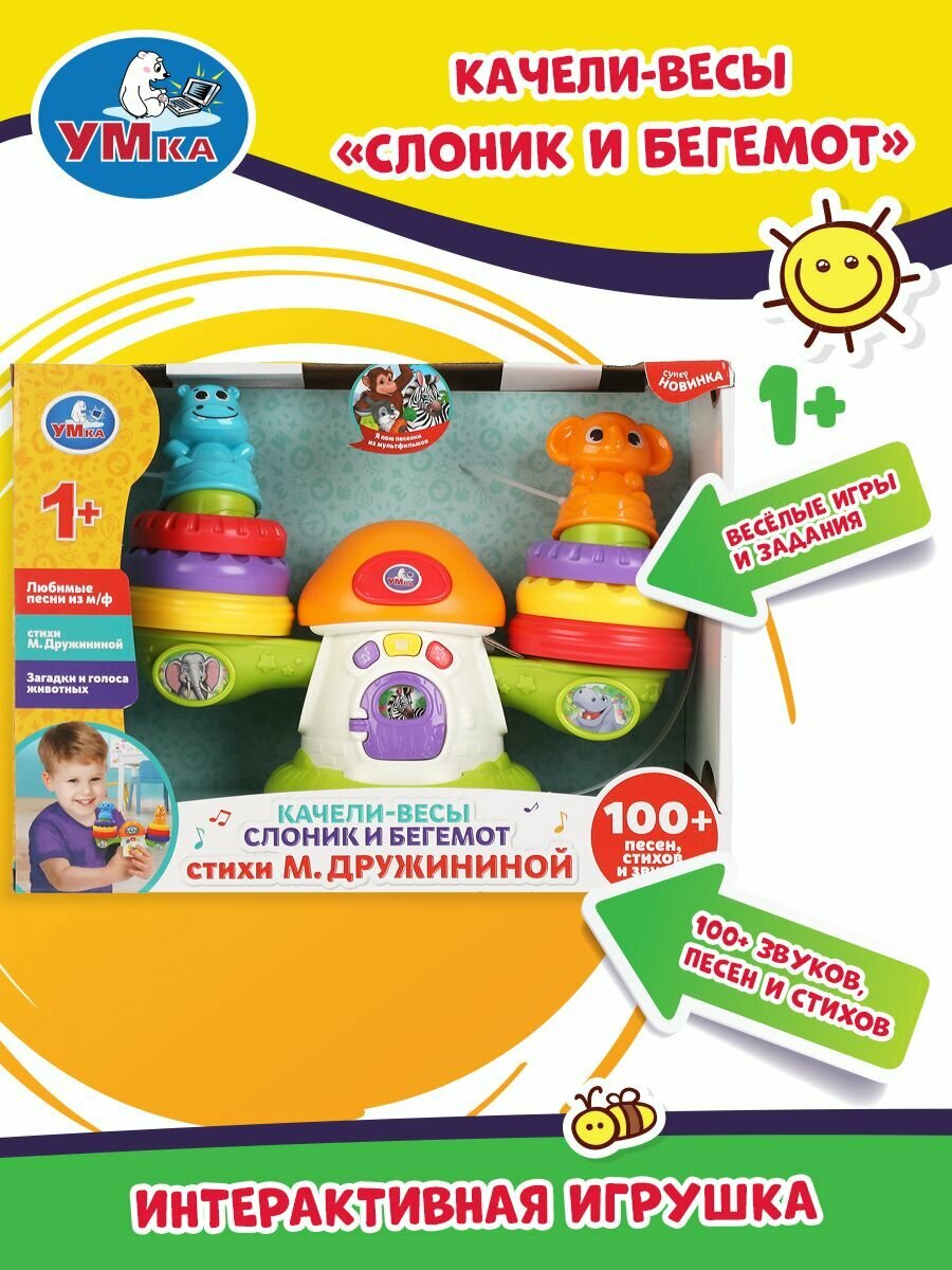Интерактивная игрушка «Качели-весы. Слоник и бегемот» ТМ «УМка» станет прекрасным подарком для ребёнка: