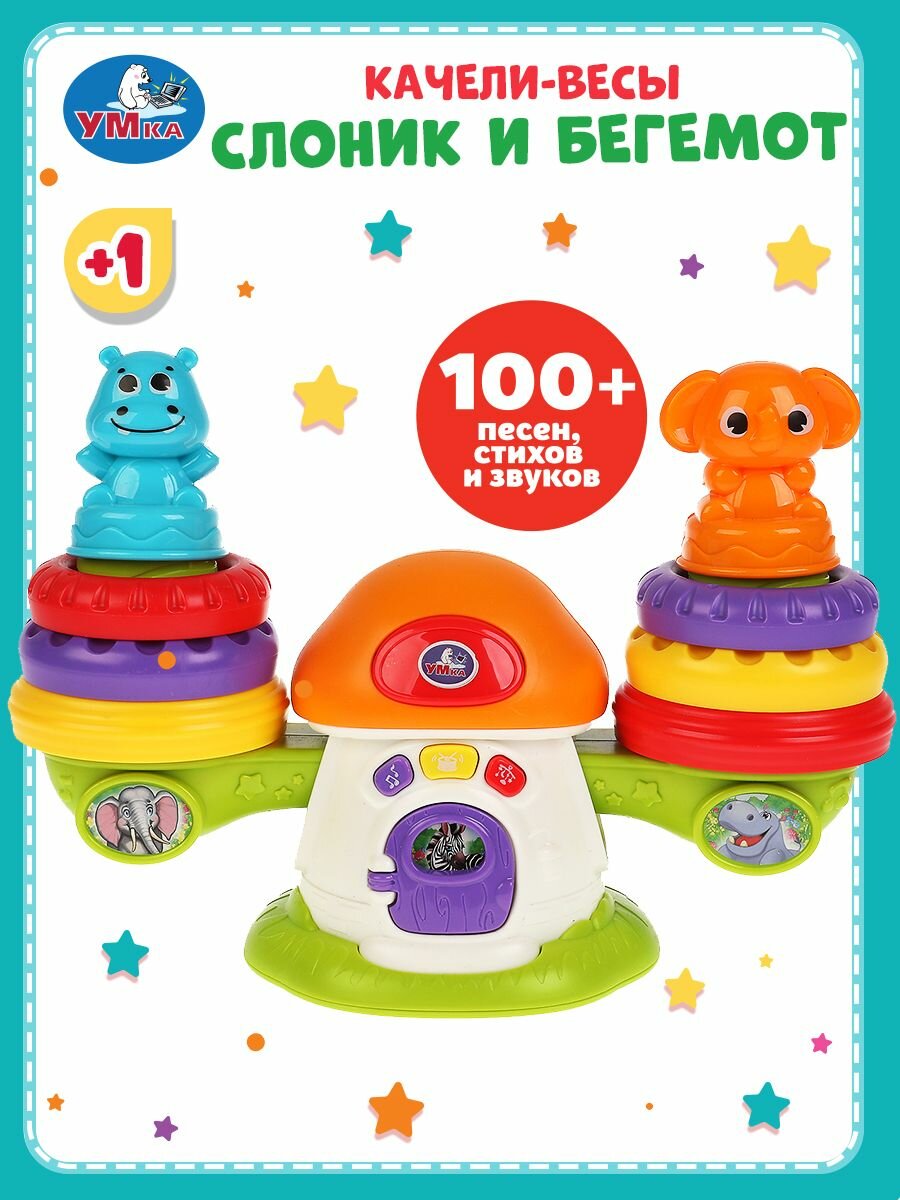 Умка Интерактивная игрушка Качели-весы Слоник и бегемот