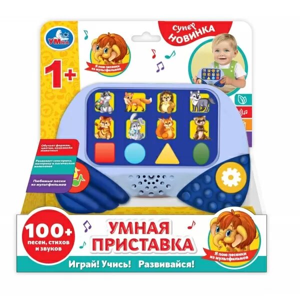 Малыш с удовольствие будет играть с этой яркой приставкой и слушать любимые песни из мультфильмов, интересные стихотворения и весёлые звуки. роме того, в лёгкой игровой форме он познакомится с цифрами и понятиями «цвет» и «форма», а также выучит названия животных.