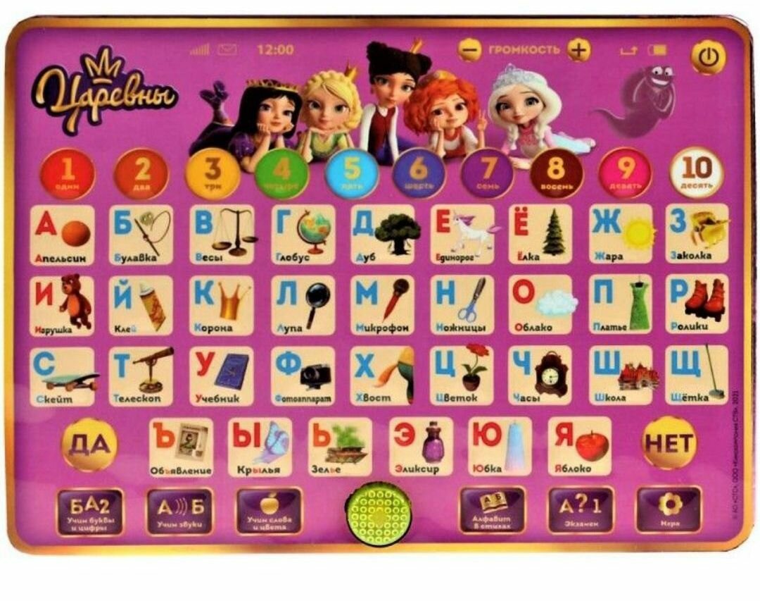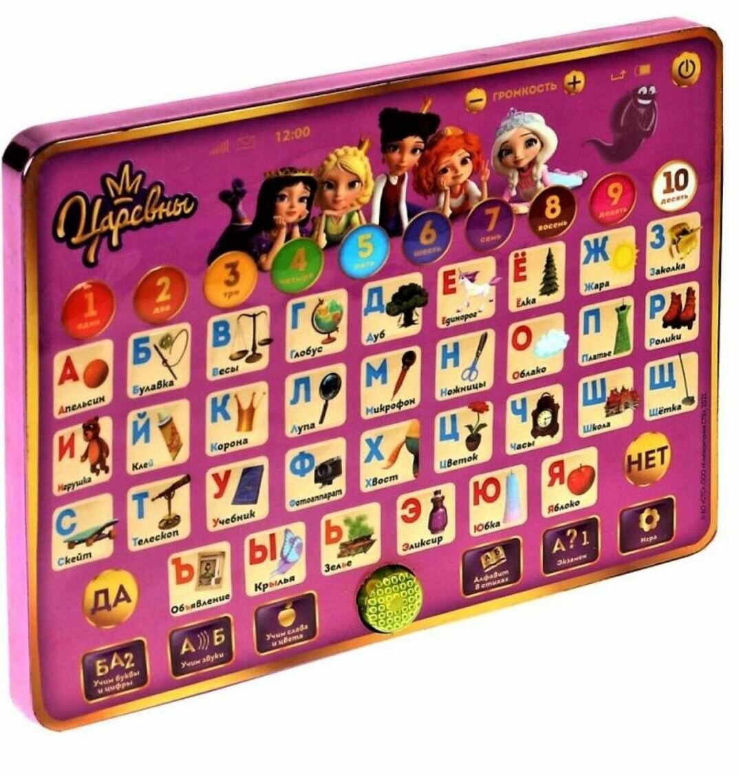 Игрушка-планшет – креативный и полезный подарок для развития и игры. Такой планшет поможет ребёнку быстро и эффективно выучить азбуку. Малыш с удовольствием будет нажимать на кнопки и слушать песни, стихи, отвечать на интересные вопросы, а также играть в увлекательные игры.