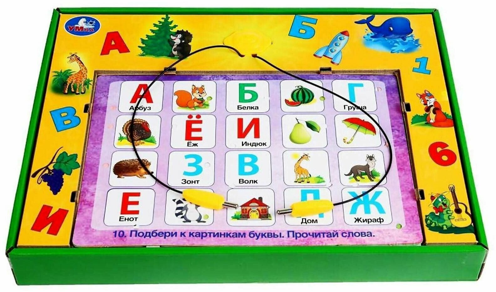 Электровикторина ТМ «УМка» расширяет кругозор, способствует обучению буквам русского алфавита, цифрам, счёту и развивает: