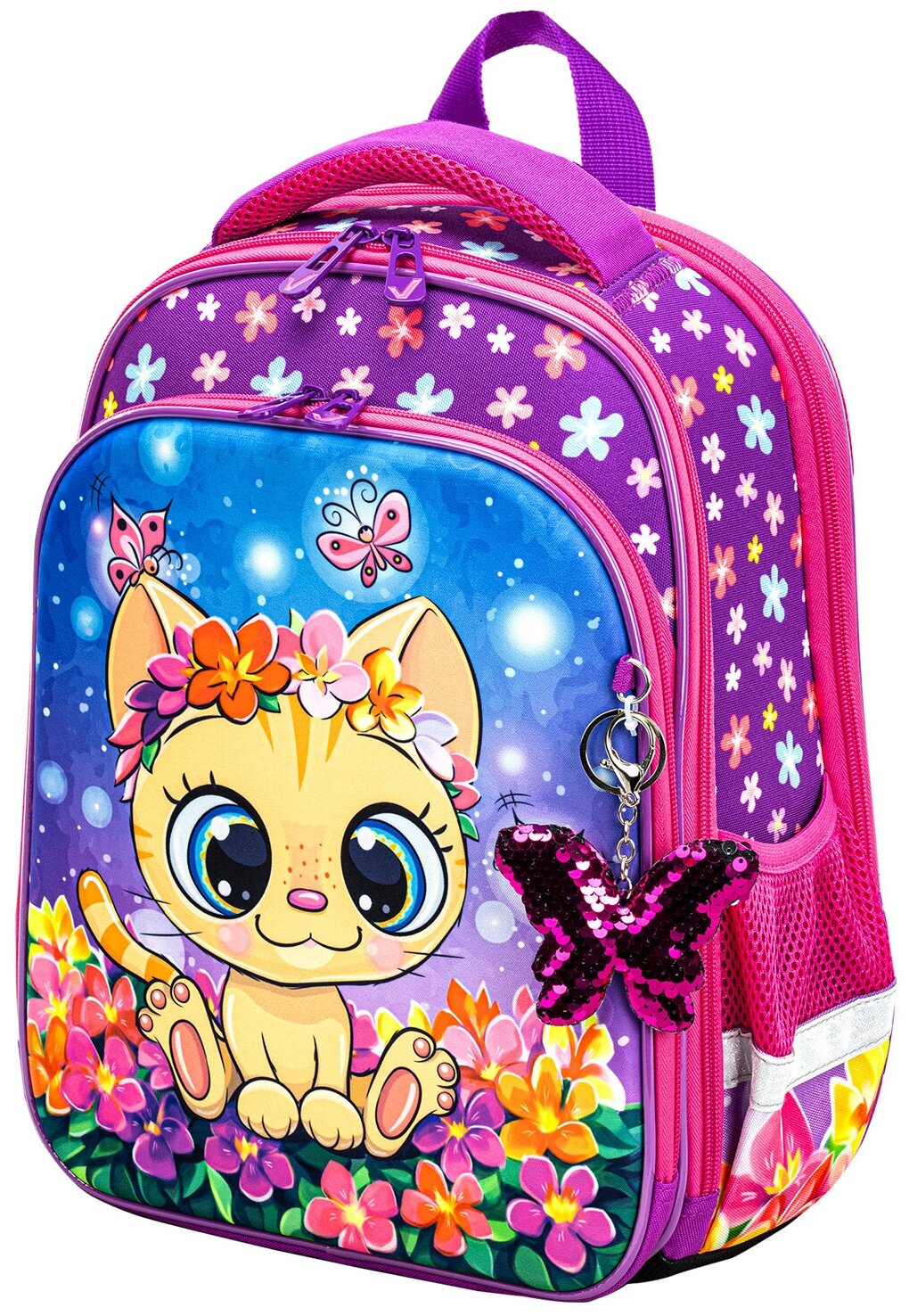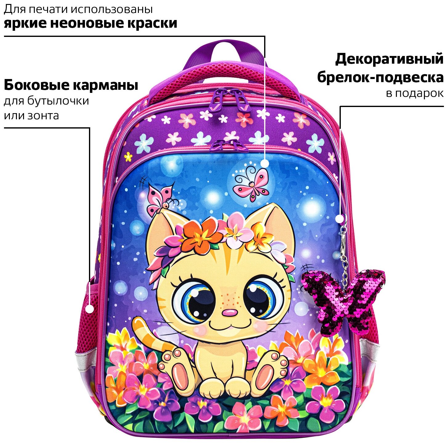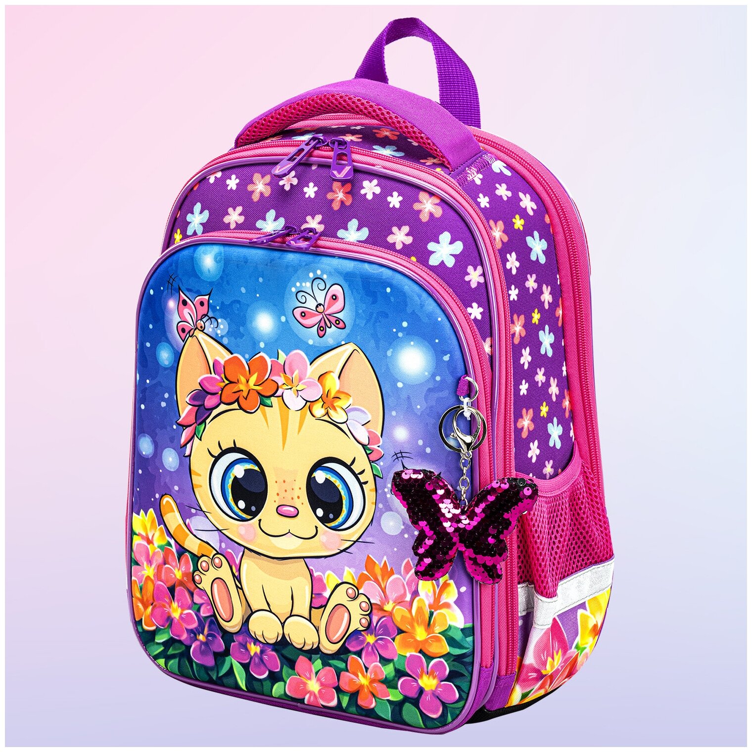 Сервис сравнения цен СкидкаГИД предлагает сравнить цены на товар «Ранец Brauberg QUADRO Charming kitten анатомическая вентилируемая формоустойчивая спинка 3 отделения розовый/сиреневый (270602) Ранец Quadro 3 отделения Charming kitten 37х28х18 см»