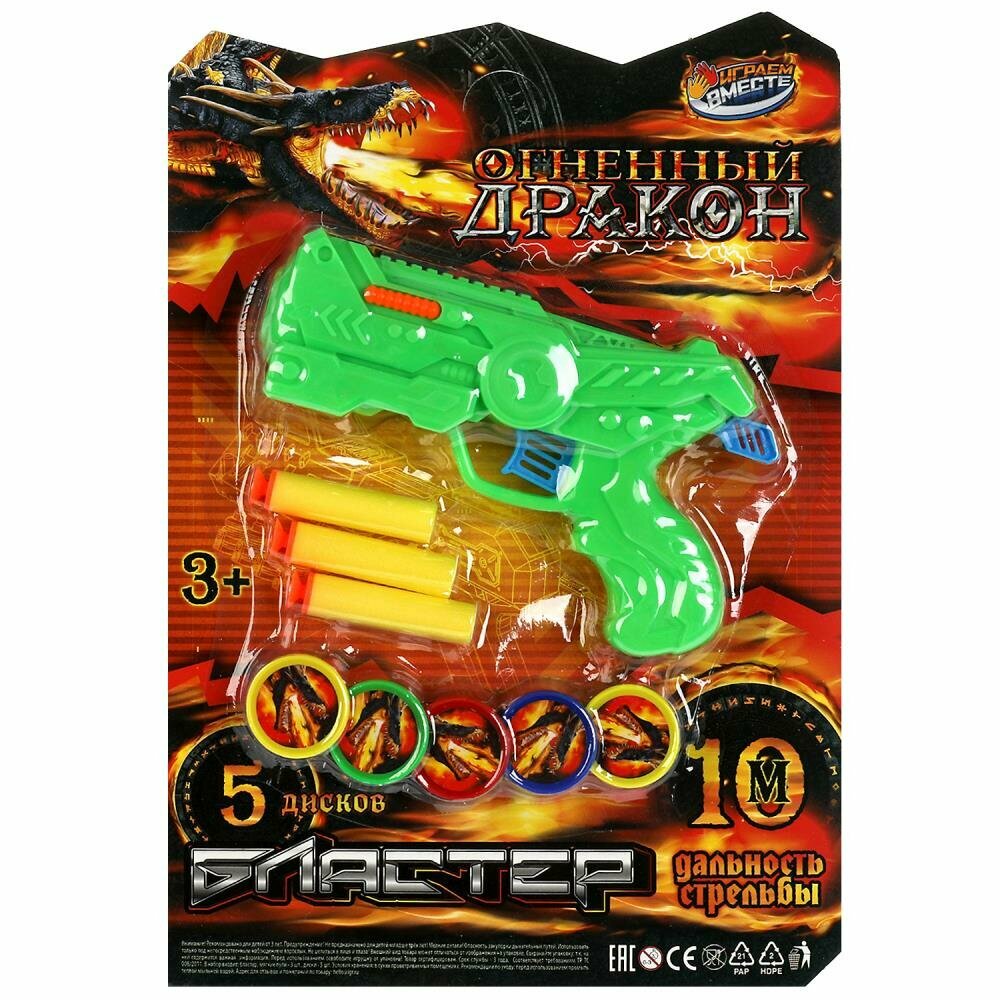 Бластер «Огненный дракон» с мягкими пулями ТМ «Играем вместе» непременно понравится юному герою: