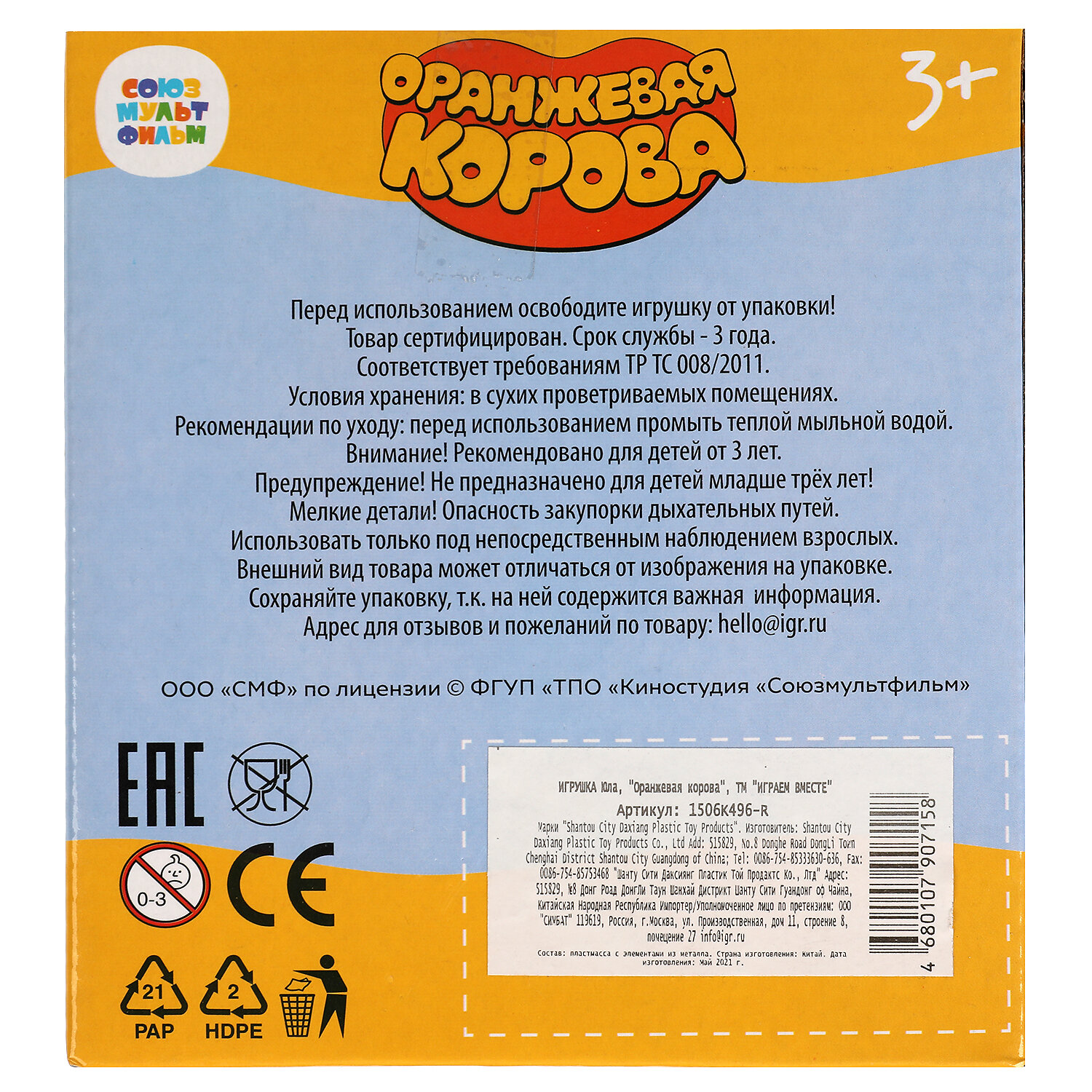 Рекомендовано детям от 3-х лет.