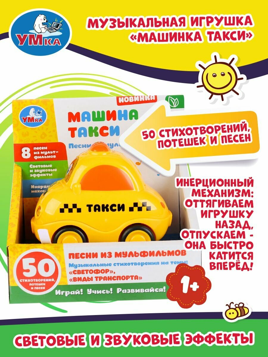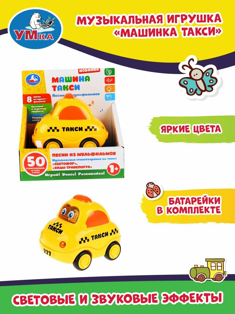 Развивающая игрушка Умка Машинка Такси Музыкальные стихи М.Дружининой 8 веселых песенок