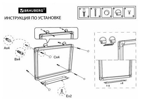 Лаковое покрытие предназначено для письма специальными маркерами для белой доски, а металлическая поверхность позволяет размещать информацию при помощи магнитов. Алюминиевая рама придает доске необходимую прочность. Элементы крепления и полка для принадлежностей входят в комплект. Размер — 60х90 см.