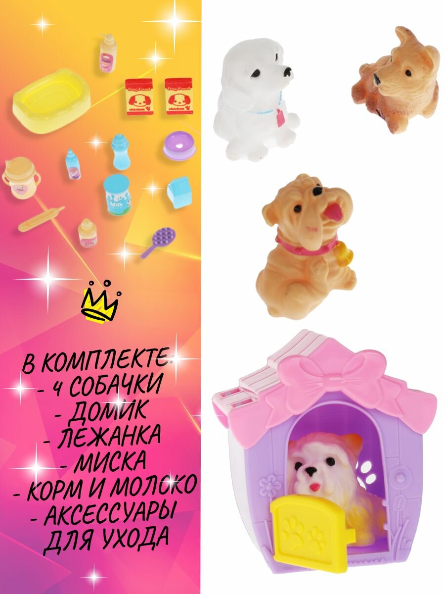 | Комплектация | 4 собаки, домик, миска, расчёска, молоко |