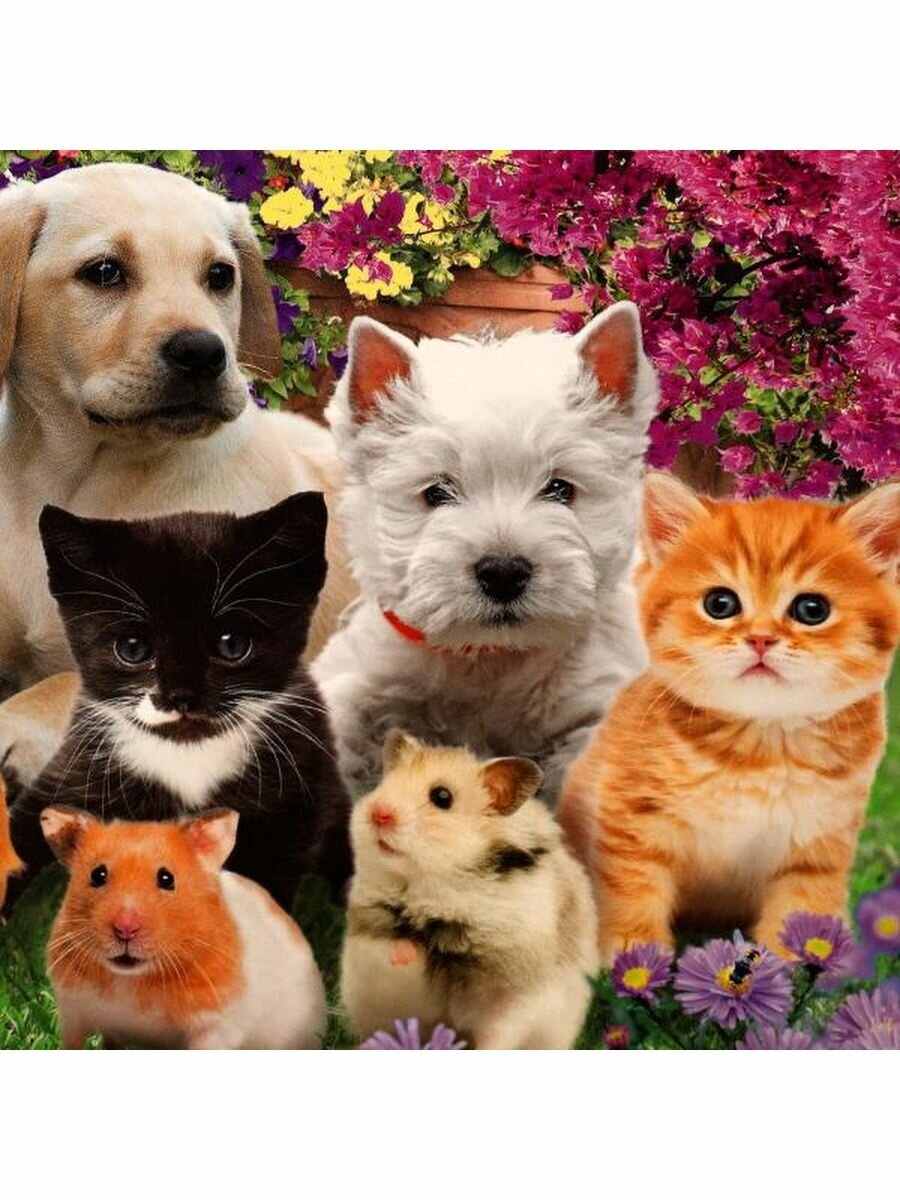 Из 500 пазлов, входящих в данный набор, можно собрать красочную картинку, на которой изображены милые животные на цветочной полянке. Готовую картину можно повесить на стену, используя её в качестве украшения интерьера.