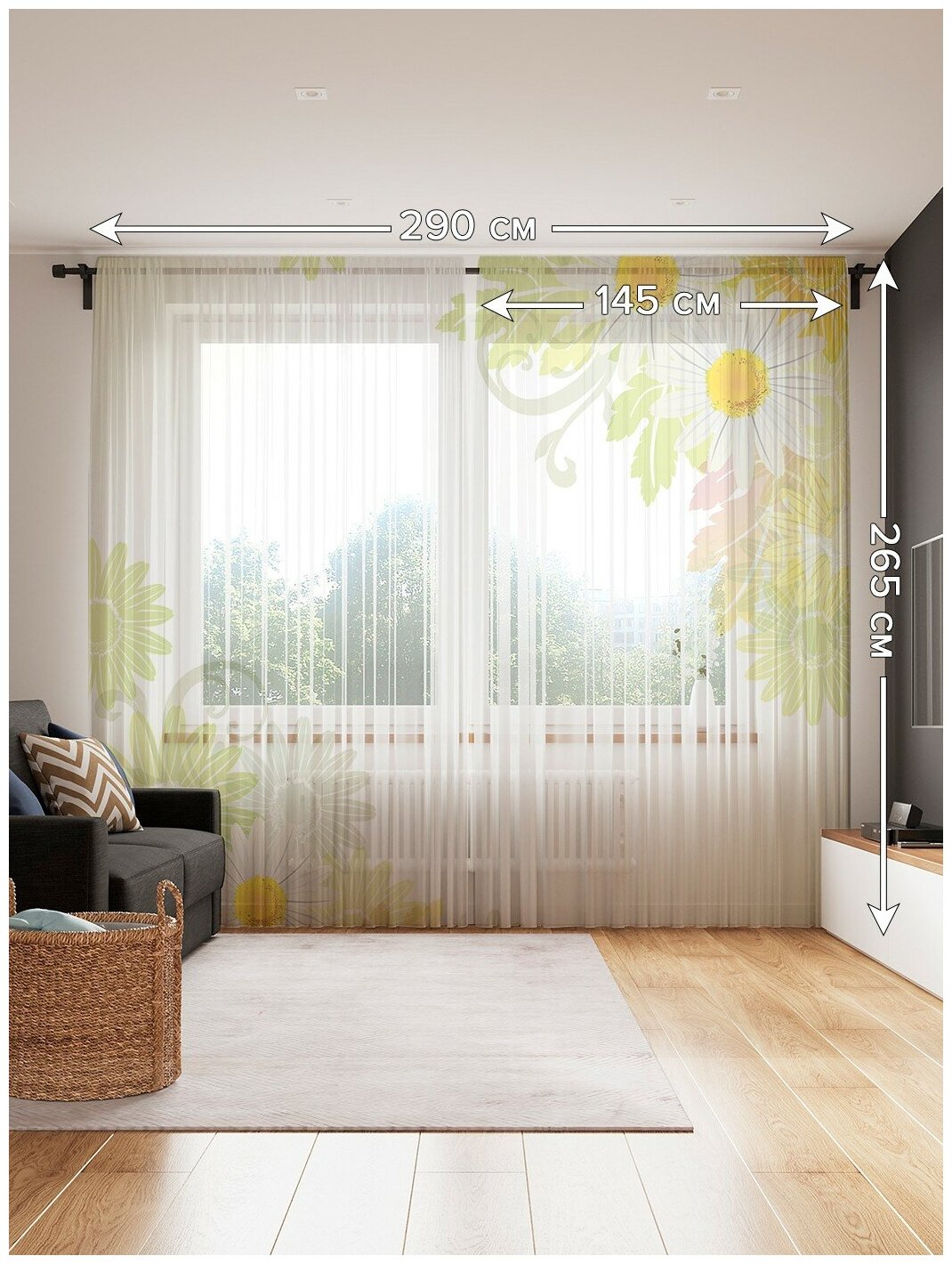 Фототюль JoyArty "Ромашки" 145x265см (2 полотна со шторной лентой + 50 крючков) Фототюль Ромашки 2 полотна со шторной лентой + 50 крючков 145x265 см