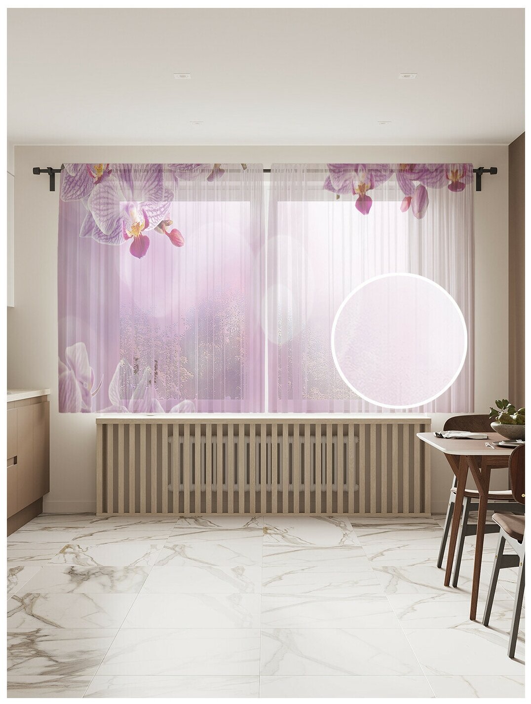 Модель: Фототюль Облачные орхидеи 2 полотна со шторной лентой + 50 крючков 145x265см