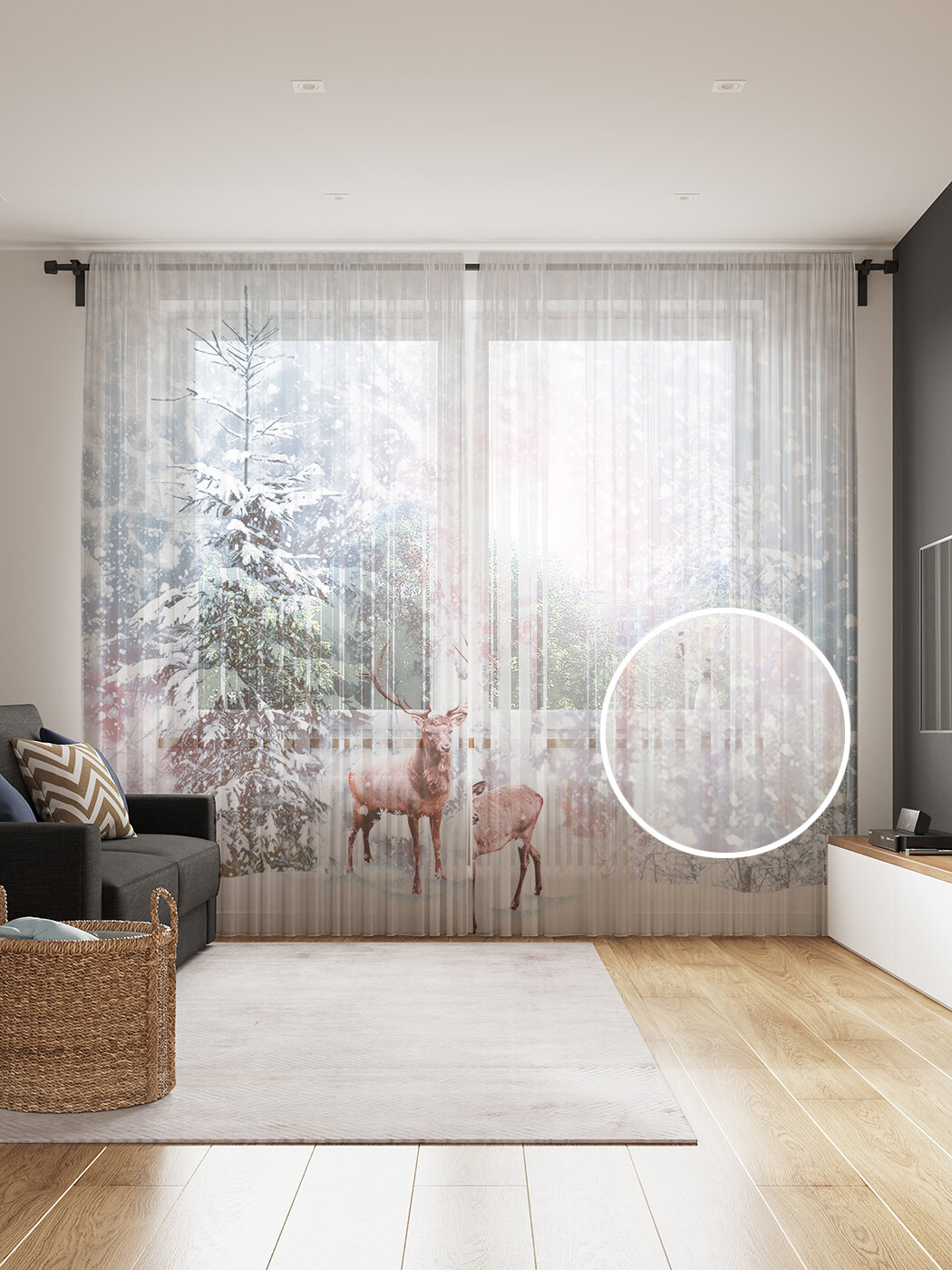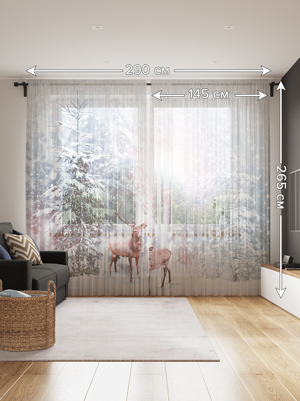 Фототюль JoyArty "Олени в снегу" 145x265см (2 полотна со шторной лентой + 50 крючков) Фототюль Олени в снегу 2 полотна со шторной лентой + 50 крючков 145x265 см