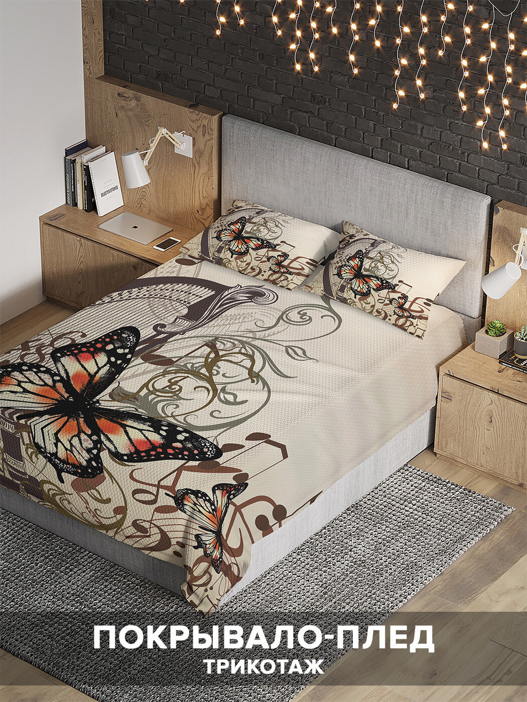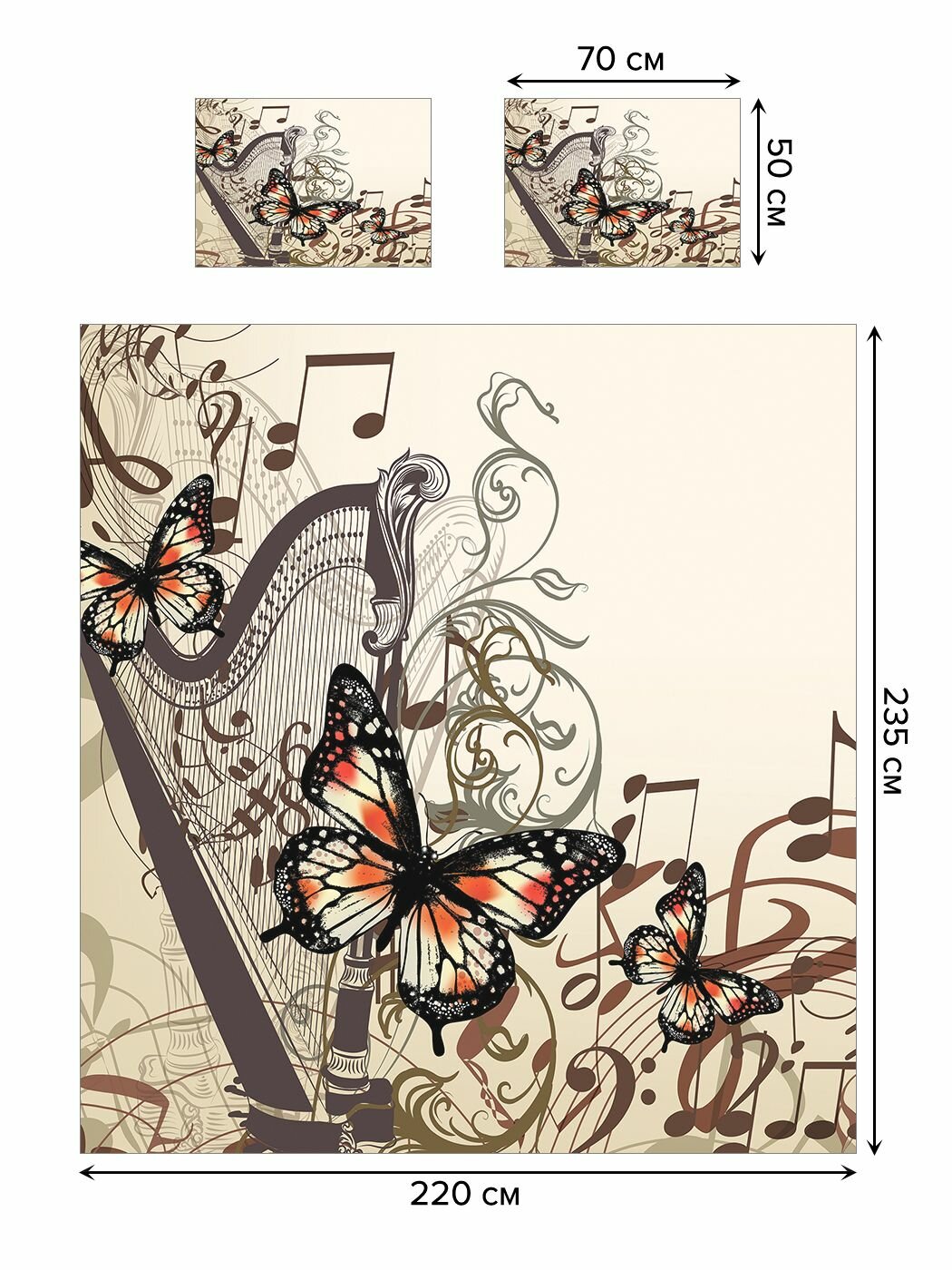 Модель: Покрывало Музыкальные бабочки 235x220 и две наволочки 70х50