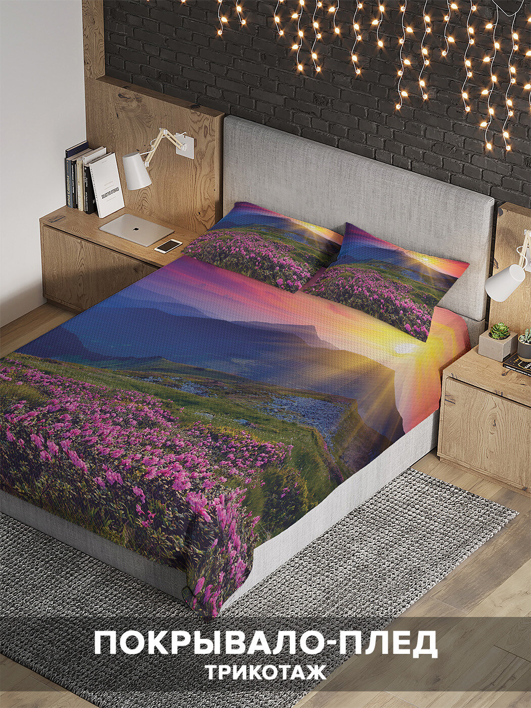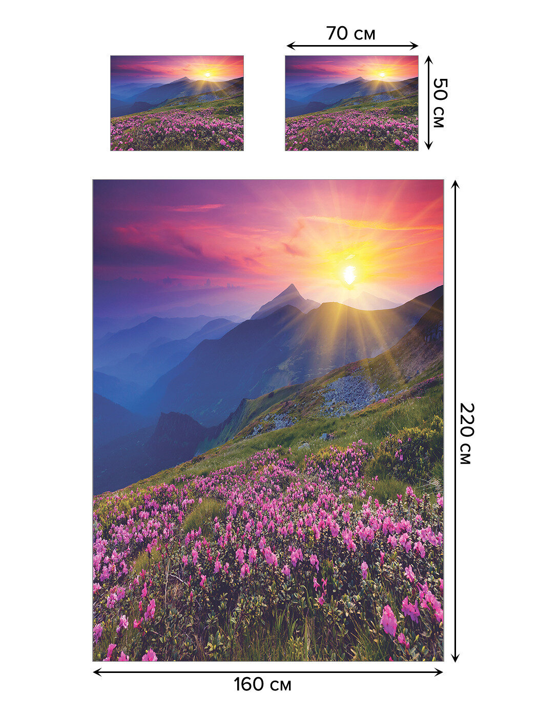 Модель: Покрывало Горные цветы на рассвете 220x160 и две наволочки 70х50