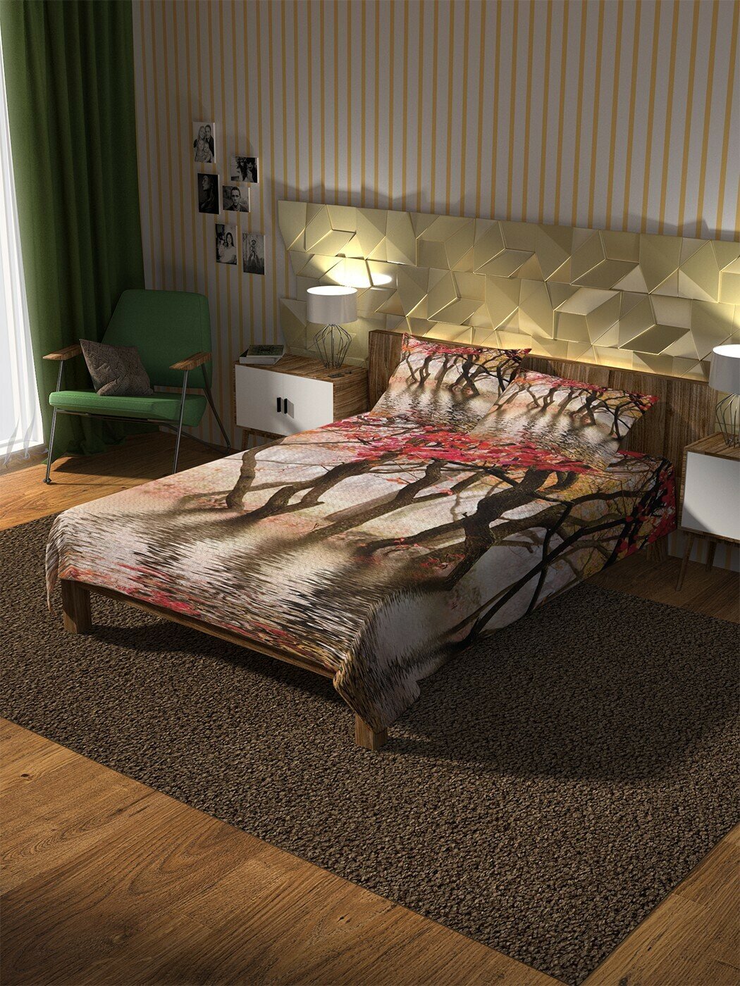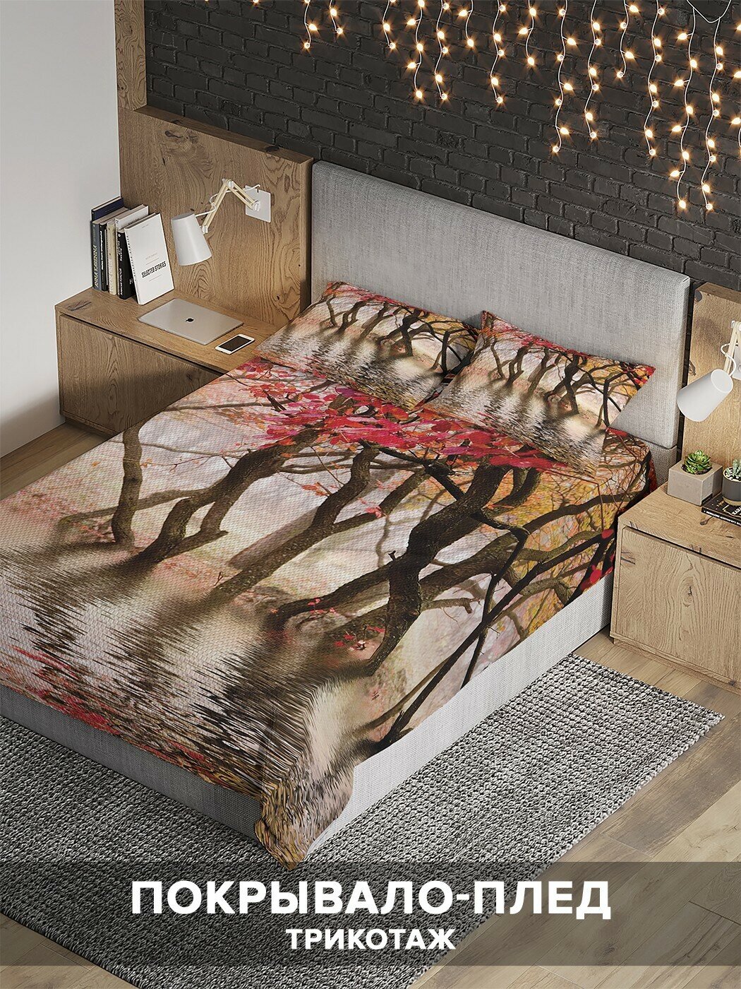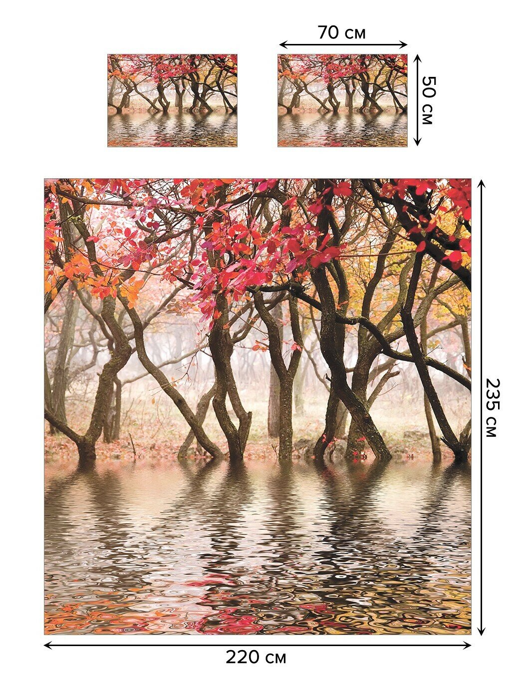 Модель: Покрывало Лес на озере 235x220 и две наволочки 70х50